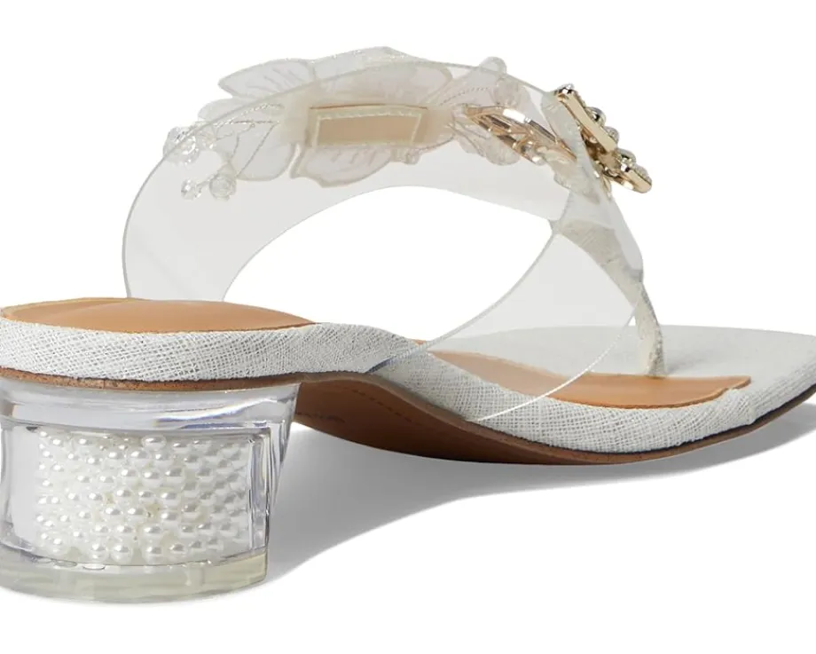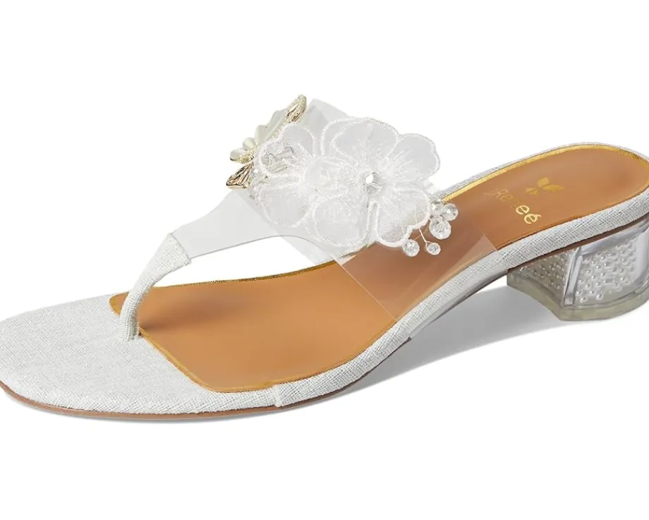 - Imagination, underfoot styling J. Renee® Flowerfly. Designed to turn heads, this stunning slip-on sandal boasts a sleek PU upper and transparent vinyl square toe, adding a modern, ethereal touch to your look. The novelty heel brings playful elegance, perfect for making a statement at any event. Comfort meets couture with a plush memory foam + latex insole, offering all-day support, while the synthetic rubber outsole ensures a steady stride.