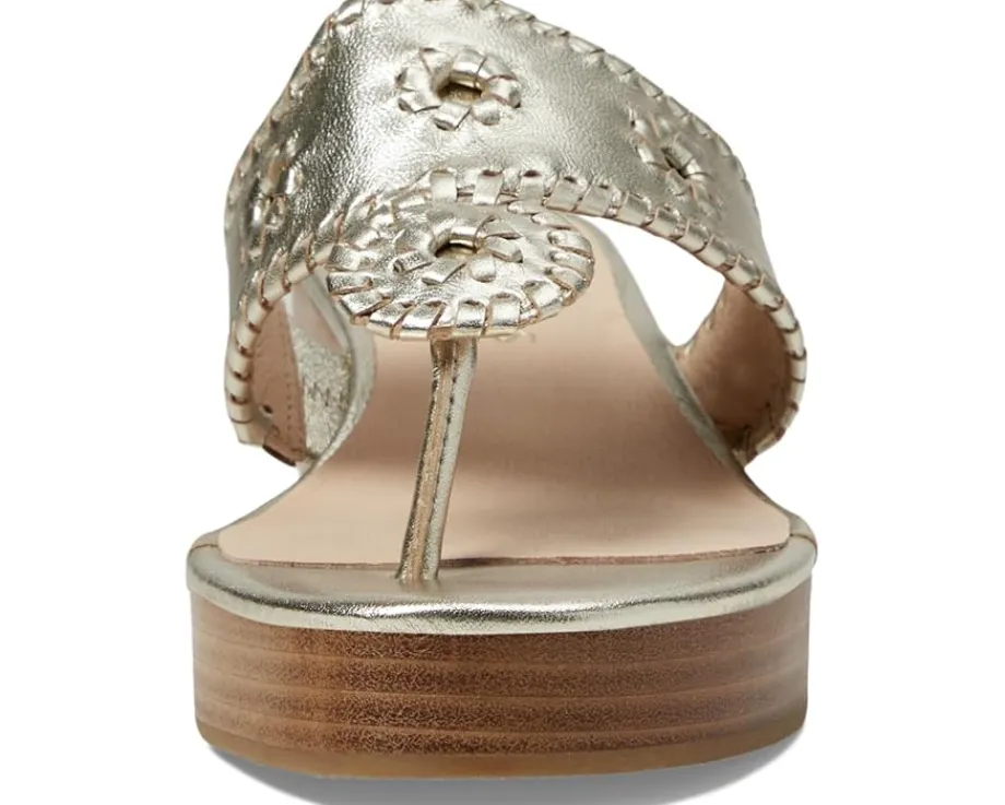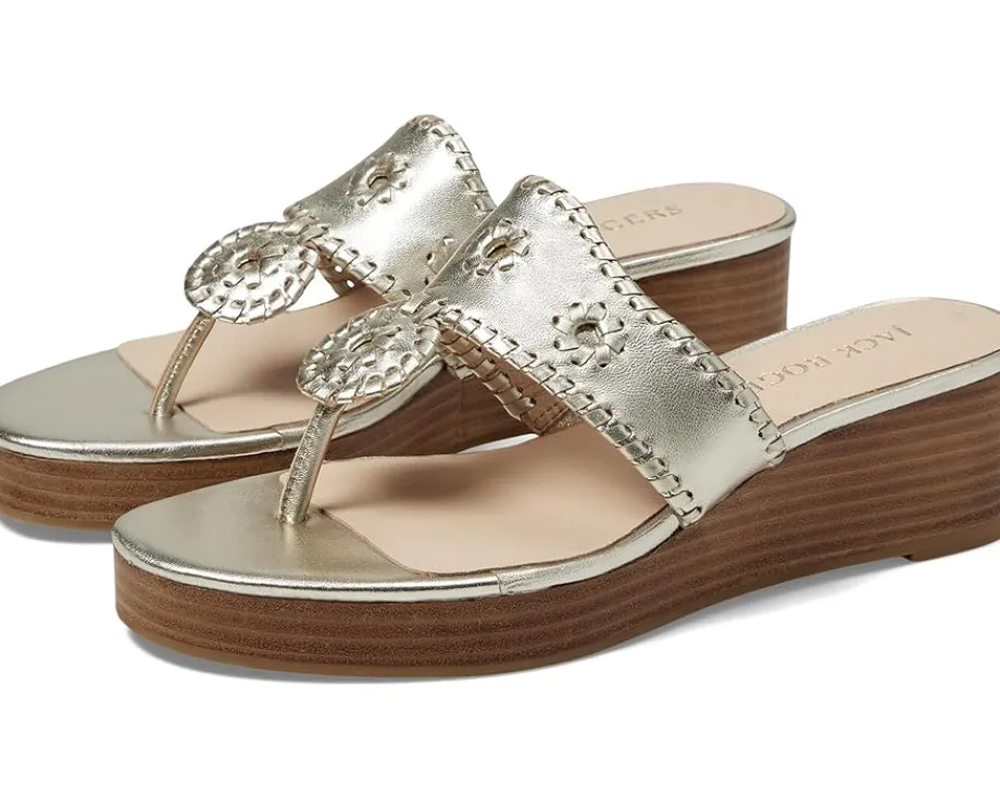 - Step up your look with the shine of Jack Rogers® Jacks Mid Wedge Stacked heels with toe-post design. These slip-on wedge heels have upper, lining, and insole crafted from luxurious leather.
