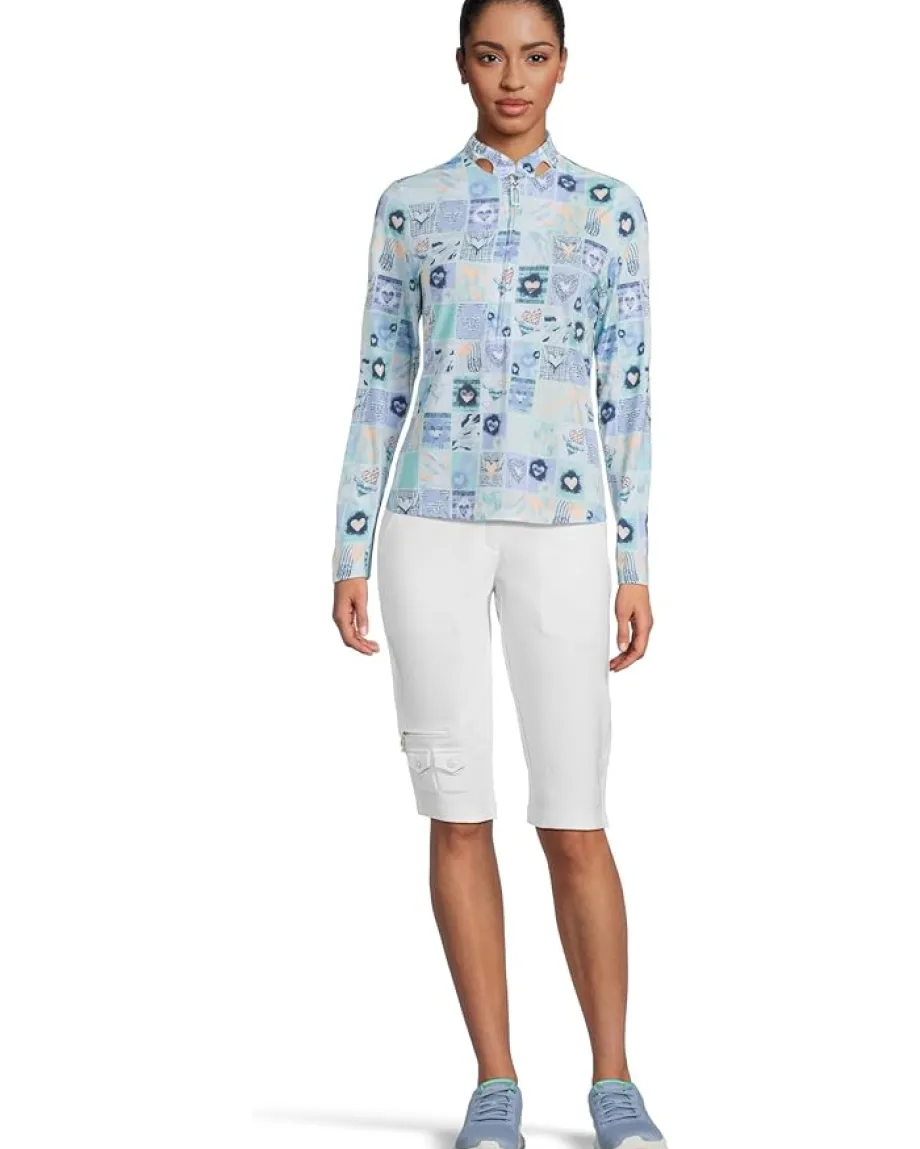 - Step outdoors in style and full sun protection wearing Jamie Sadock® Sunsense Hearts Print Long Sleeve 1/4 Zip Sun Protection Top. Crafted with Proprietary Microdenier Sunsense Fabric offering SP50+ protection and aeration, ventilation system under the forearm, this pull-on style top keeps you cool while you are active. It features a mock neck with a quarter-zipper closure, long sleeves, and all-over printed details.