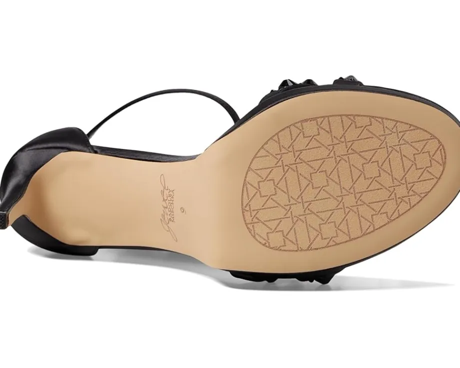 - Styled with thin straps with oversized sparkling gemstones, the Jewel Badgley Mischka® Hustle sandals are perfect for making a glamorous entry into any party or event. The adjustable ankle strap with a buckle closure ensures a perfect fit. These high-heeled sandals offer you a height boost and add a chic look to your outfits. From your cocktail gowns to evening dresses, these slim-heel sandals are padded to offer added comfort.