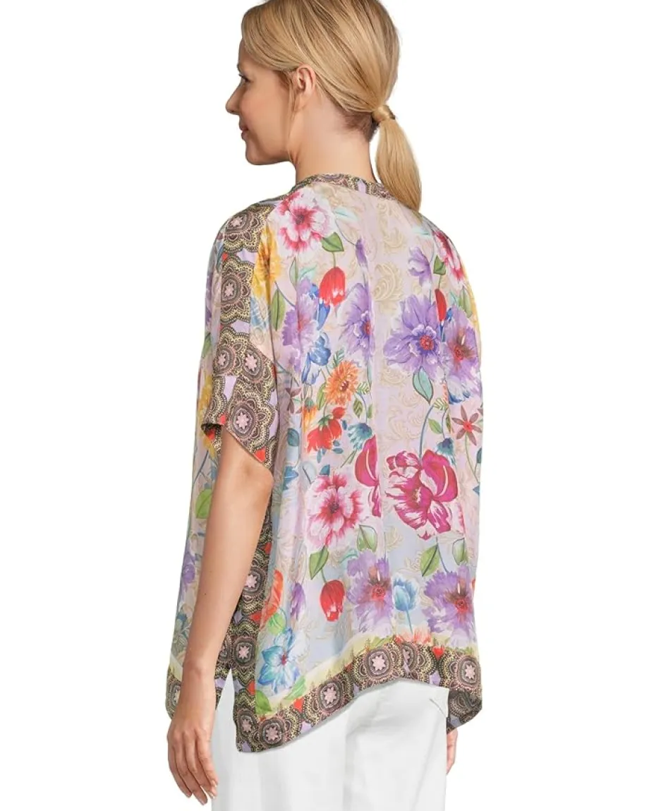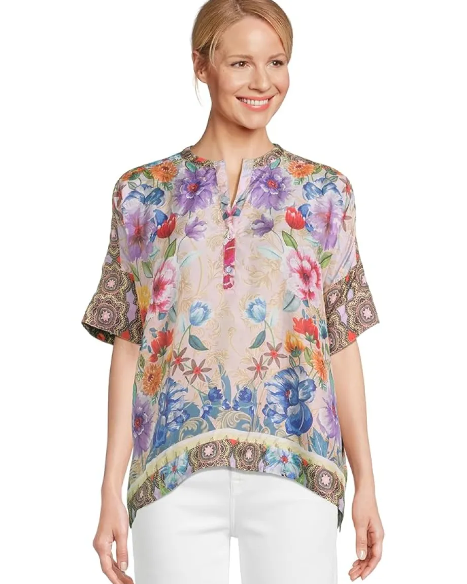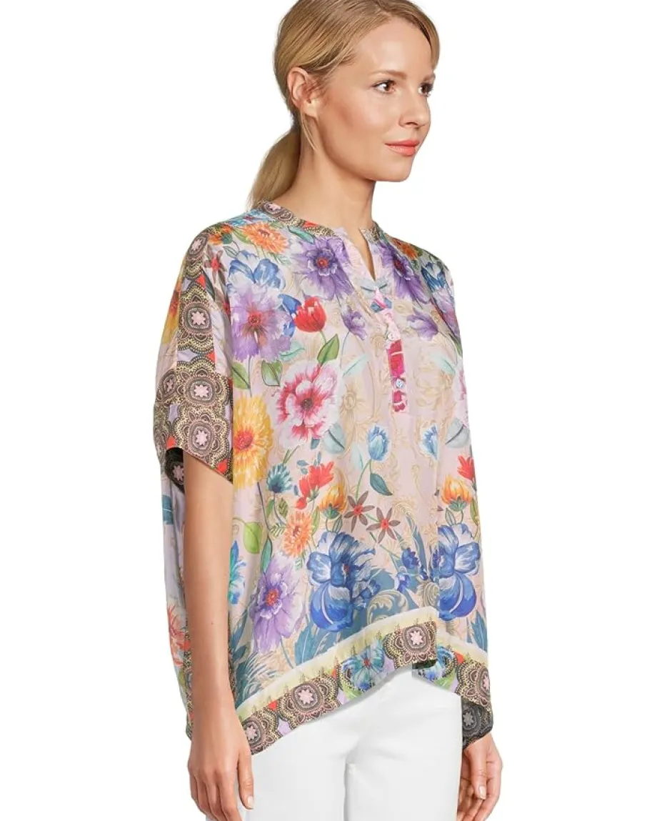 - Feel the romance in every thread wearing the Johnny Was® Louella Blouse. Crafted from luxurious silk, this top offers striking color with a relaxed feel. Featuring a unique mix of vibrant colors in an oversized fit, this blouse is equal parts comfort and luxury.