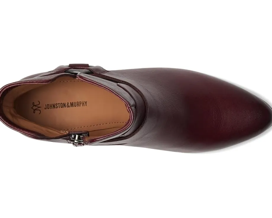 - From your stylish outfits to formal looks, the Johnston & Murphy® Trista Harness Booties are perfect to pair with different outfits and styles. The leather upper of these boots is styled with a buckle detail and a zippered side closure while the skeletal leather and microfiber lining offer added comfort. These ankle boots are made of a cushioned OrthoLite® footbed with a microfiber-covered leather welt. Easy to slip on and off, these leather boots will become your go-to pair.