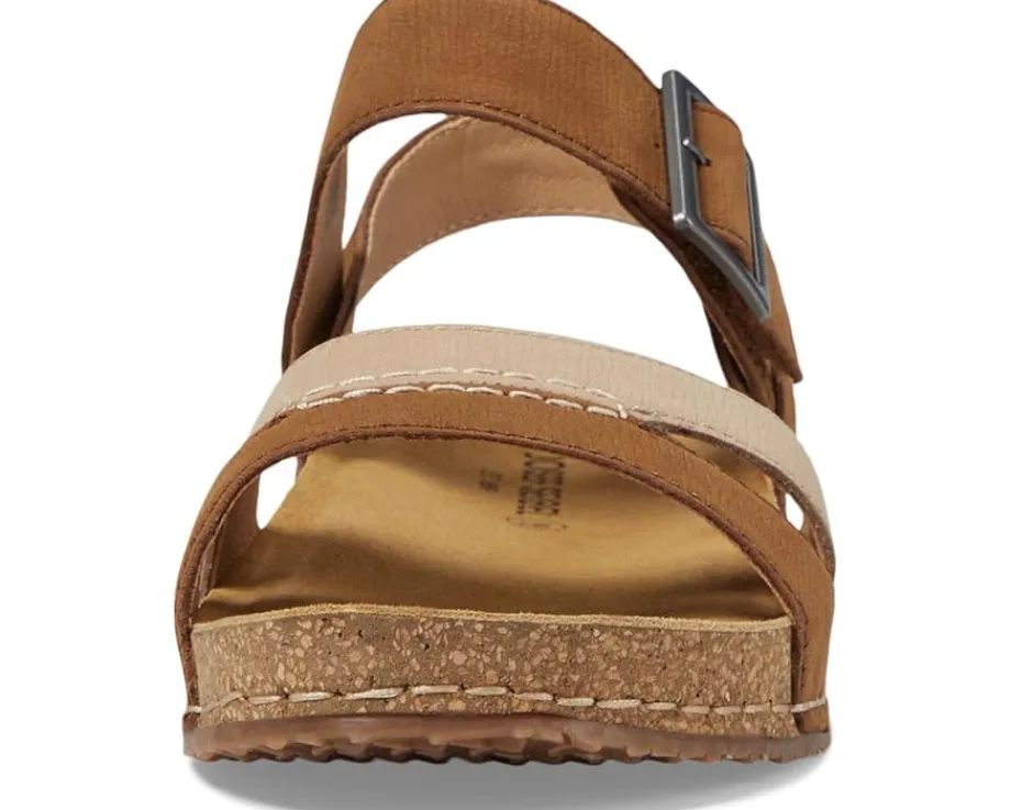 - Stride a confident and sophisticated look wearing the Josef Seibel® Hannah 01. Crafted from leather upper, lining and insole, this pair of two-tone strappy design sandals features open round toe, supportive heel strap with adjustable hook-and-loop closure and decorative buckle detailing for ultimate comfort.