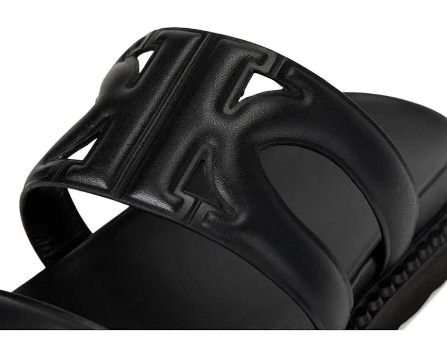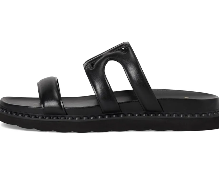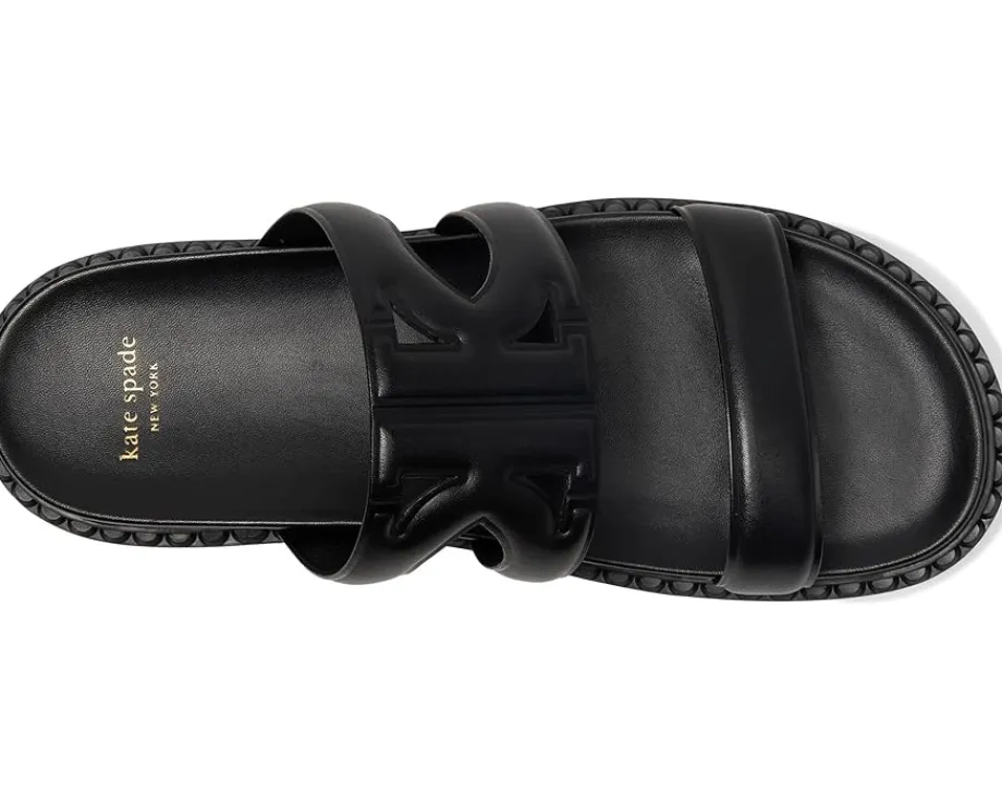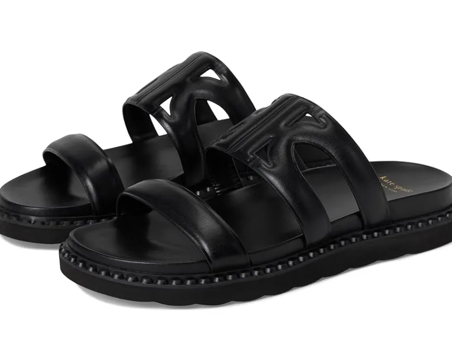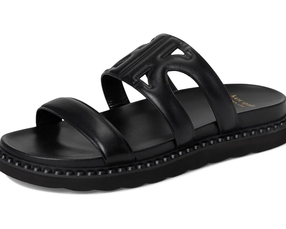 - Designed with signature laser-cut perforations that accent the puffy straps, the Kate Spade New York® Duo Footbed Sandals make a versatile addition to your footwear collection. These sport slides are made of a leather upper, molded footbed, and leather lining.