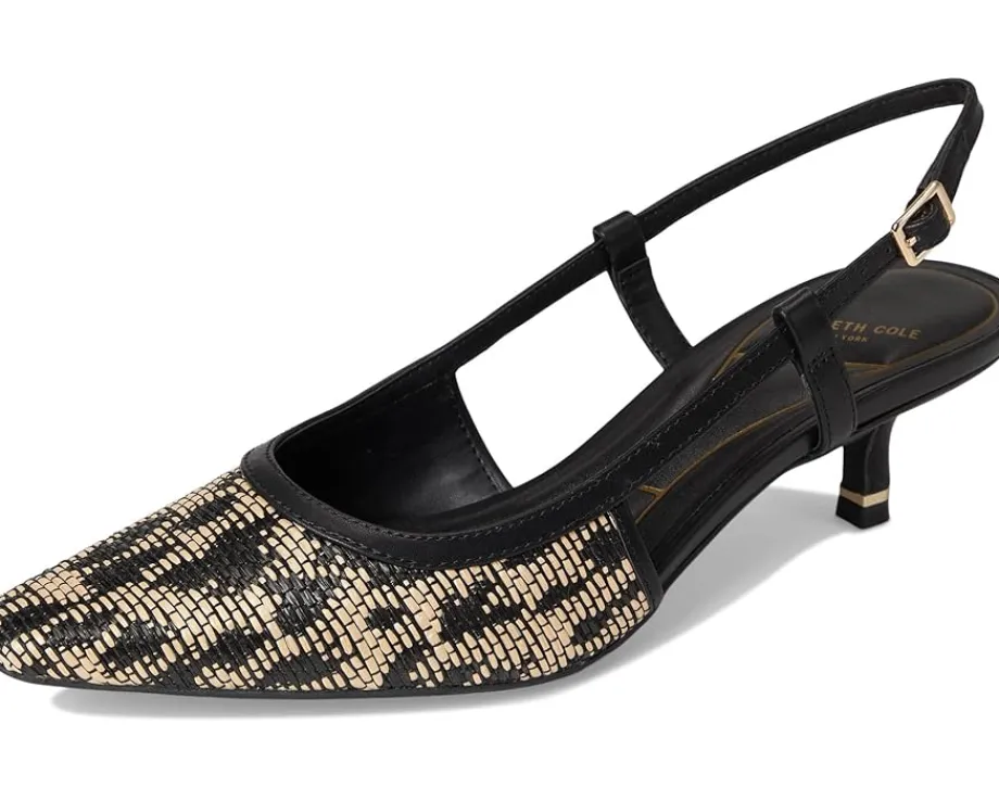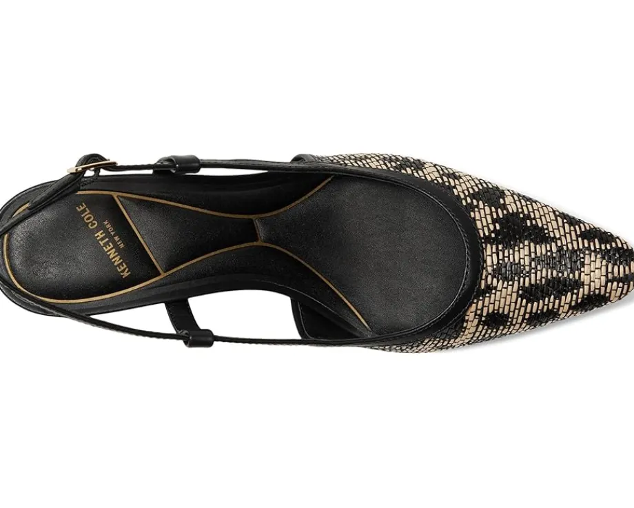 - Slingback strap with adjustable buckle closure.