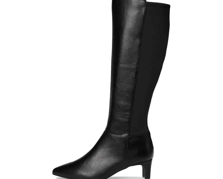 - Designed to flatter every curve, the Kenneth Cole Reaction® Berry boots pair a pointed toe design with a sculpted silhouette that rises to the knee. Its smooth front and elastic knit back mold effortlessly to your leg for a custom-like fit. These heeled boots are made of a polyurethane upper, foam insole, and leather lining. Their zippered side closure ensures easy wear. Equal parts tailored and modern, these knee-high heeled boots move with you – delivering streamlined sophistication from day to night.