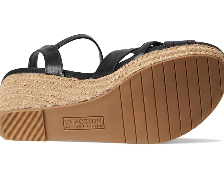- Amp up both style and comfort wearing Kenneth Cole Reaction® Comi Sandals. The comfortable wedge-heeled sandals are crafted with a strappy faux leather upper, faux leather lining, and a comfortable faux leather insole. The ankle strap and buckle closure ensure a custom fit.
