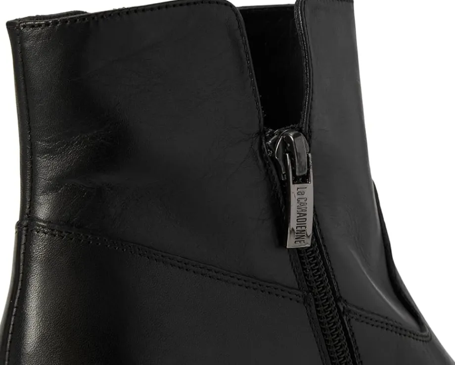 - A subtle nod to the classic cowboy boot, the La Canadienne® Yvette leather bootie is ready to deliver comfort and elegance on a daily basis. With its chic pointed toe, delicate topstitching, versatile mid-block heel, and inside zip closure, this ankle bootie is perfect with anything from jeans to skirts. Our City Dry™ technology features waterproof Italian leather upper and a breathable leather lining that keeps you comfortable whether indoors or outside. The cushioned memory foam insole adds comfort with every step.