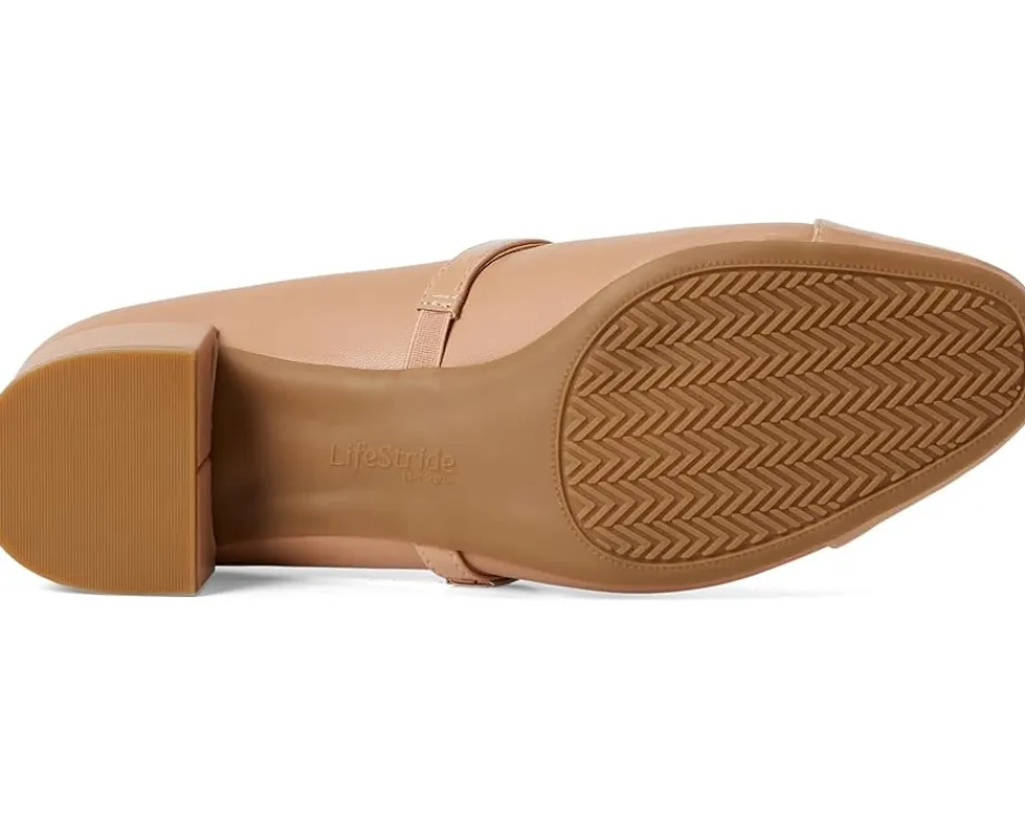 - Now trending, always classic-the LifeStride® Brooke is the perfect blend of sophistication and comfort. This reimagined Mary Jane heel features a sleek polyester upper with a chic patent toe cap and adjustable strap detail, giving you a polished look for work, weekends, and beyond. Designed for effortless wear, the pull-on fit and cupped heel provide a secure feel, while the Soft System® comfort technology delivers shock absorption, superior cushioning, and lasting support. The EVA insole ensures a plush step, and the synthetic rubber outsole with enhanced traction keeps you steady. A block heel adds the perfect touch of elegance, making every stride confident and comfortable. Plus, with partially recycled synthetic rubber linings, it’s a choice you can feel good about.