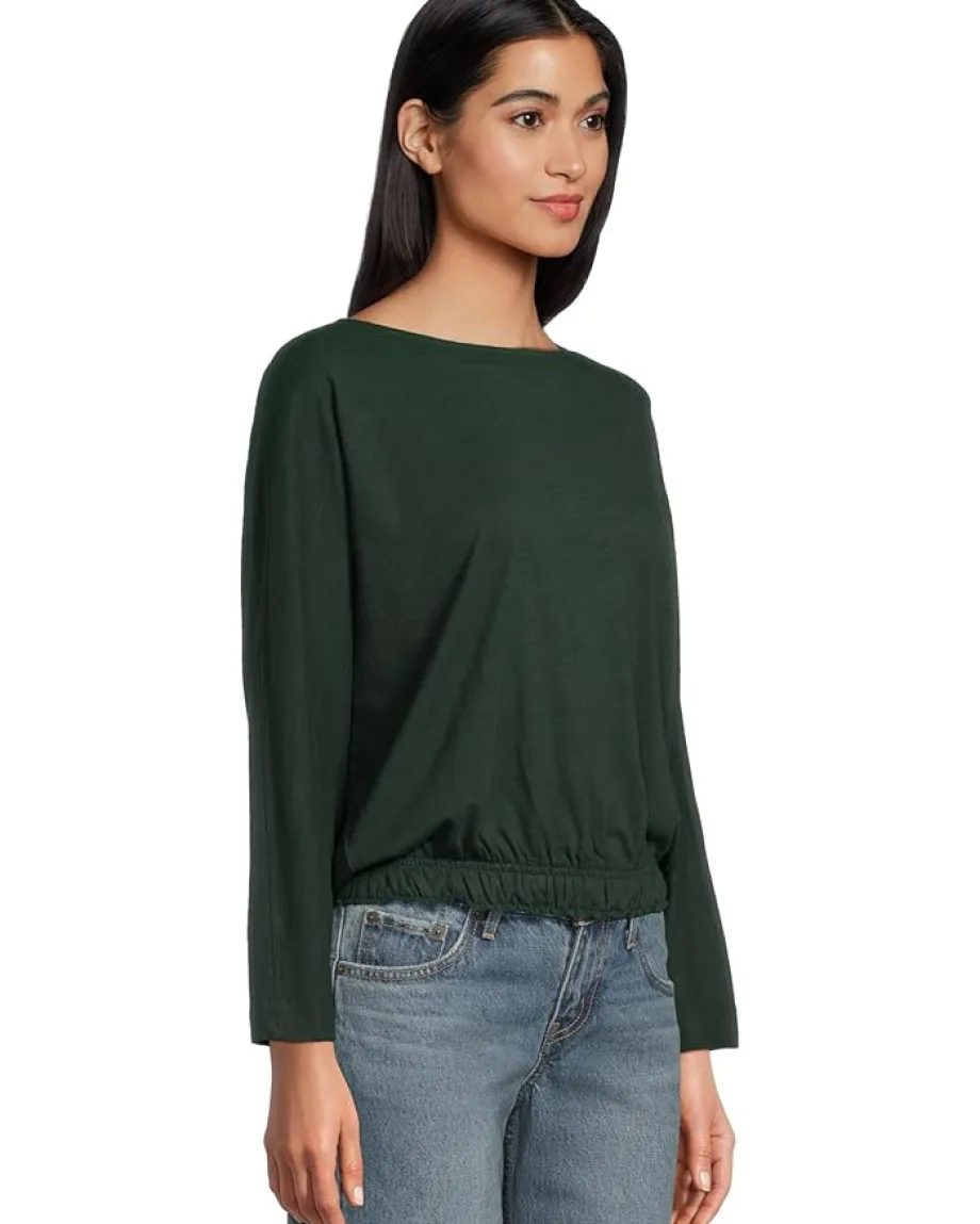 - The Lilla P™ Elastic Hem Dolman Boatneck tee, amde of Flame-Modal fabric, is effortlessly polished. The boat neckline is finished with a facing for a refined look, while the dolman sleeves add an easy, relaxed feel. Its bottom hem is designed with elastic thread, creating a lightweight, stretchy band that flatters without needing to be tucked in. This long-sleeve top is perfect to pair with trendy denim or shorts.