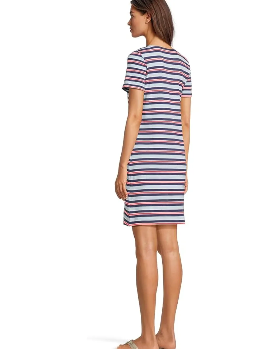 - Rejoice in the comfortable fit and trendy silhouette of the Lilly Pulitzer® Beaty Dress, adorned with an allover eye-catching striped print. The straight fit dress with square neckline features short sleeves, gold buttons at the neckline, and an above-the-knee silhouette.
