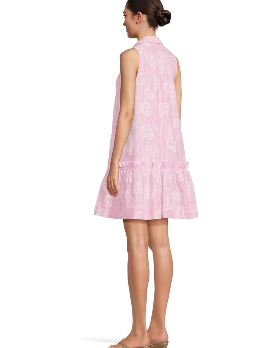 - Breeze through sunshine days in the Lilly Pulitzer® Caylinn Sleeveless Popover – a statement in swingy sophistication. This bra-friendly shirtdress combines playful polish with everyday ease, thanks to its collared neck, flattering half-button placket, and eye-catching pin-tuck bib detail. The swing fit gently skims the chest before flaring into a full hem adorned with a flirty ruffle that lands just above the knee for that perfect touch of whimsy. Sleeveless and easy to wear, this dress is ideal for warm-weather adventures or brunch on the patio. Hidden pockets add practicality without compromising style.