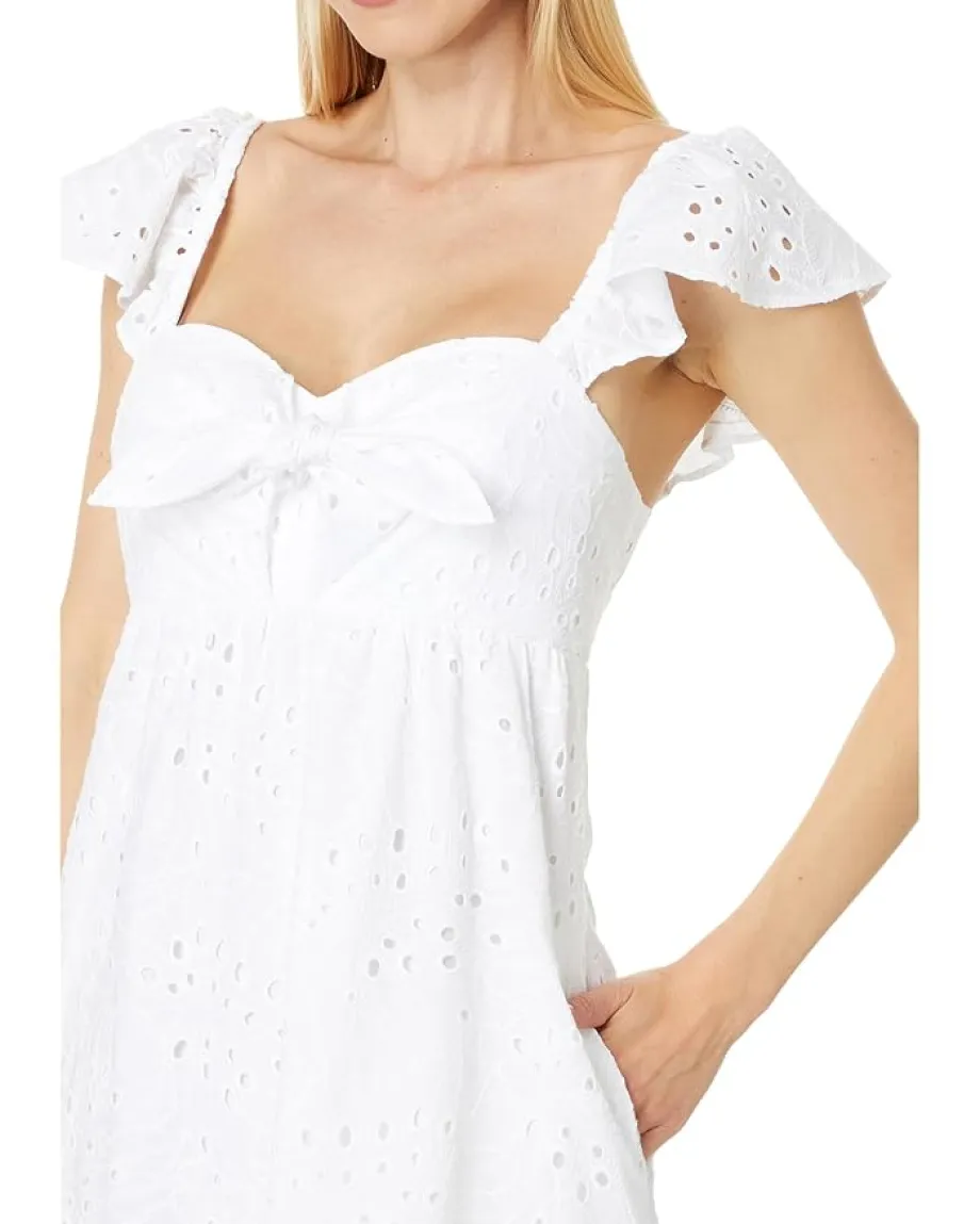 - Finesse your look with a hint of graceful charm as you wear the Lilly Pulitzer® Lantana Flutter Sleeve Eyelet Midi Dress. It features a sweetheart neckline with bodice cups, tie-front detail, short flutter sleeves, and midi silhouette.