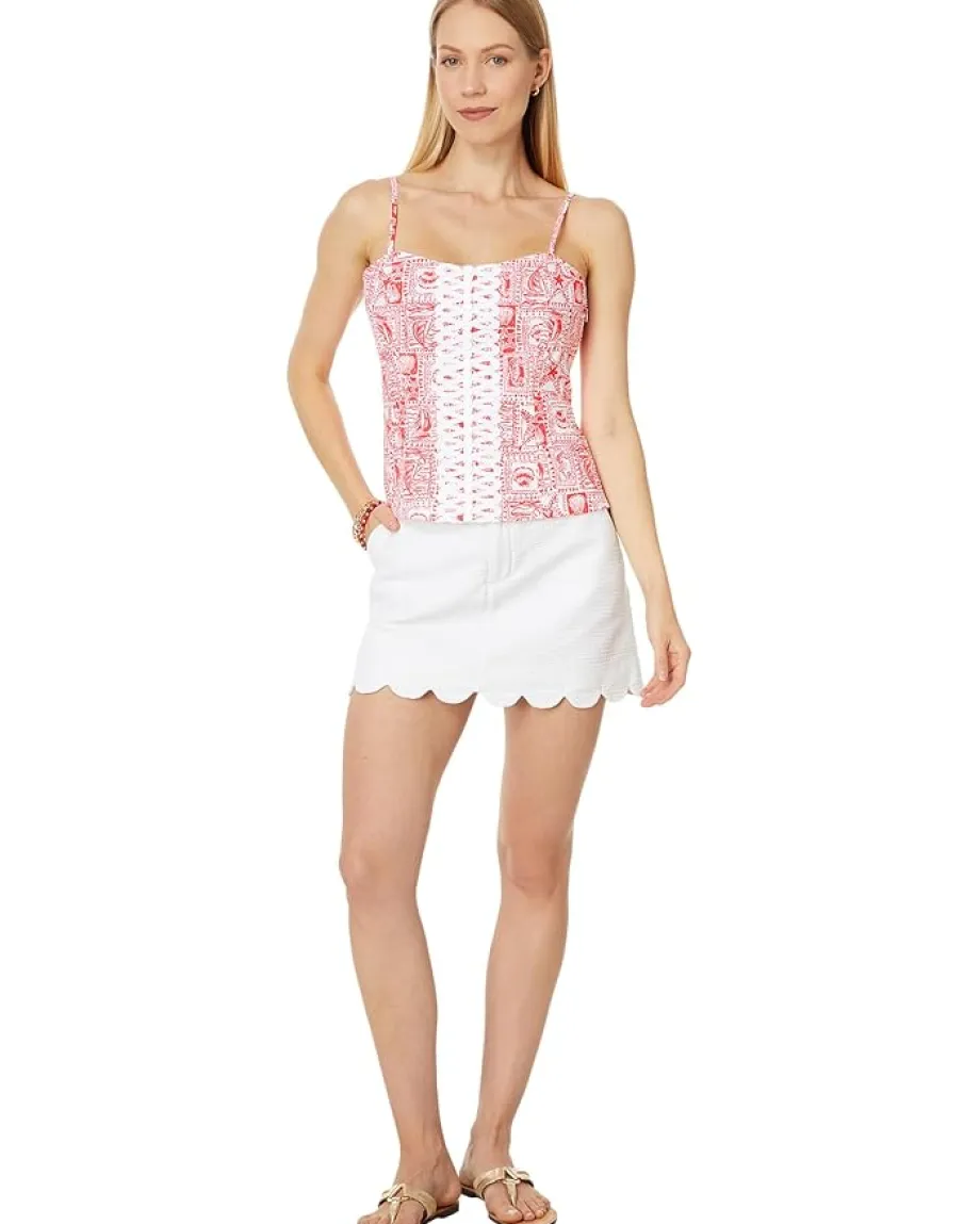 - Make outdoor excursions perfectly fashionable wearing the Lilly Pulitzer® Shelli Stretch Top. It features a square neckline, adjustable shoulder straps, lace trim detail at front, and allover exquisite print pattern.