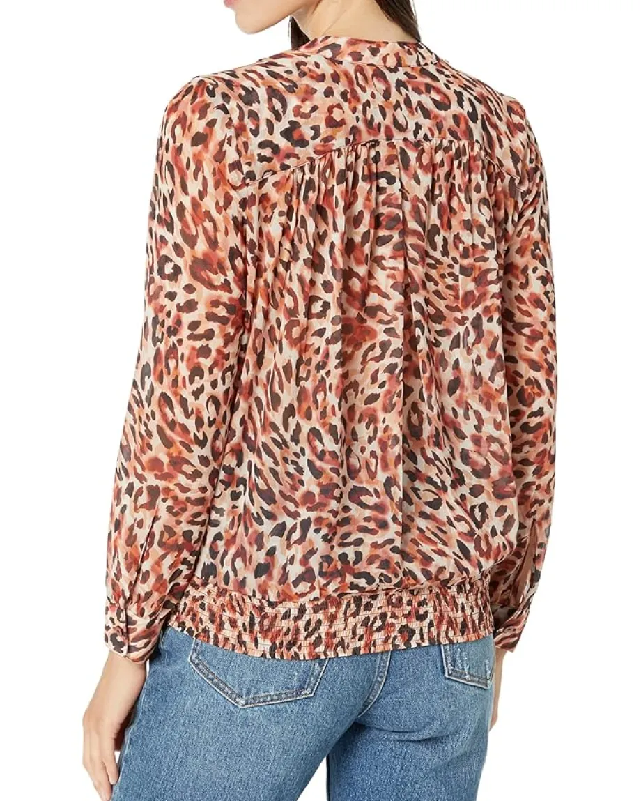 - Amp up your everyday look by wearing the Liverpoolâ„¢ Long Sleeve Woven Blouse with Smocked Waistband. The pull-on style top has a V-neckline, long sleeves with cuffs, and an elasticated hem for a classy look. The intricate print allover makes it a stand out addition to your closet.