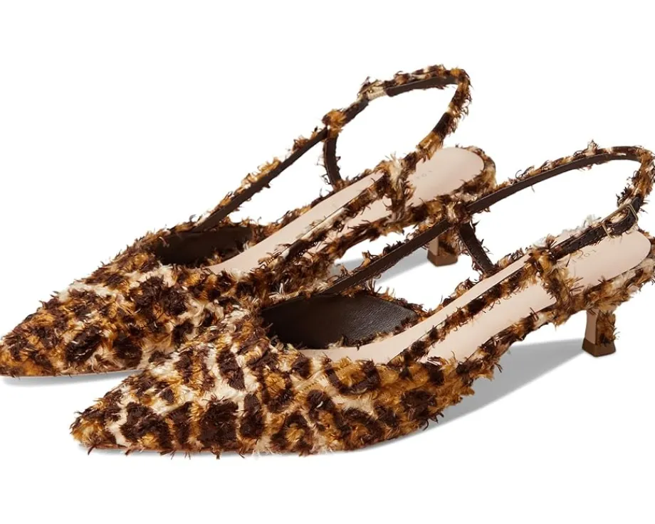 - Celebrate your special evening wearing the Loeffler Randall® Tyson Smocked Sling Back Kitten Heel with your favorite dress. Crafted from polyester upper, leather lining, and polyester insole, this pair of sandals features pointed toe, leopard print fabric, textured finish, an adjustable strap and a padded footbed with gold-stamped logo.