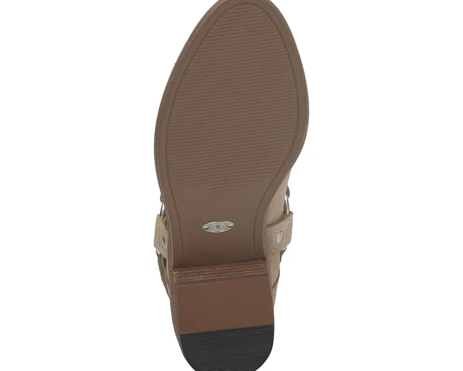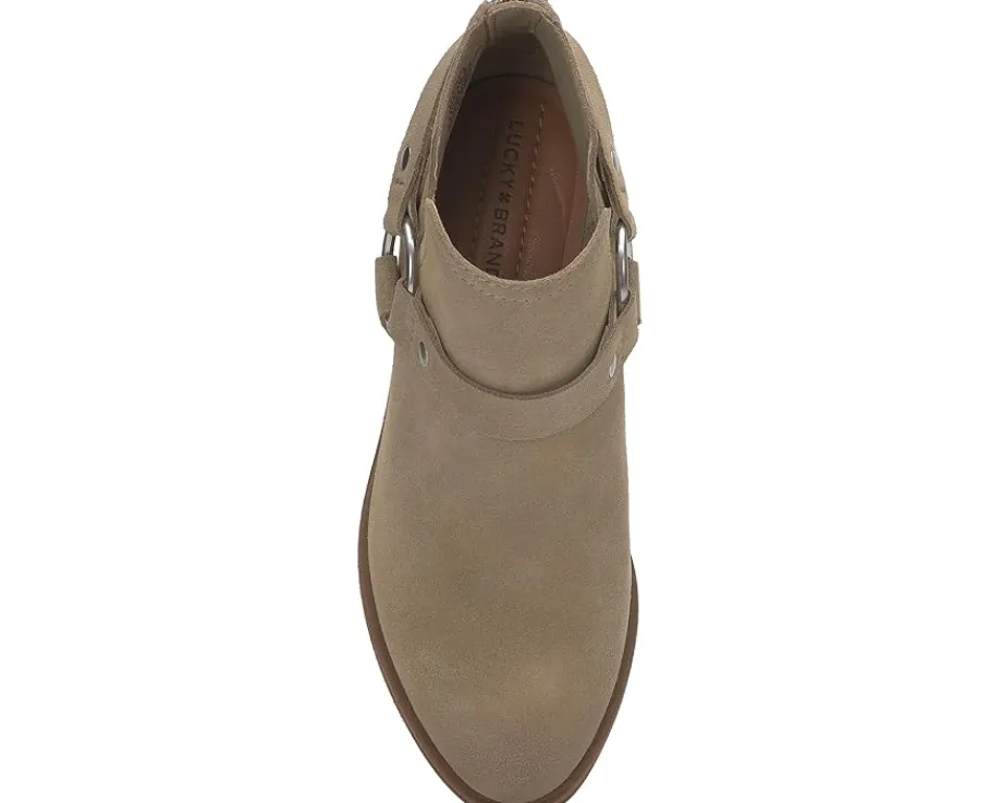 - Some western flare is added to the Lucky Brand® Boltin boots. Featuring the classic rounded toe silhouette and wearable block heels, these heeled boots also sport a sleek harness for some added styling. The leather upper, EVA insole, and polyester lining provide superior comfort and durability. These ankle boots are perfect to style up your outfits.