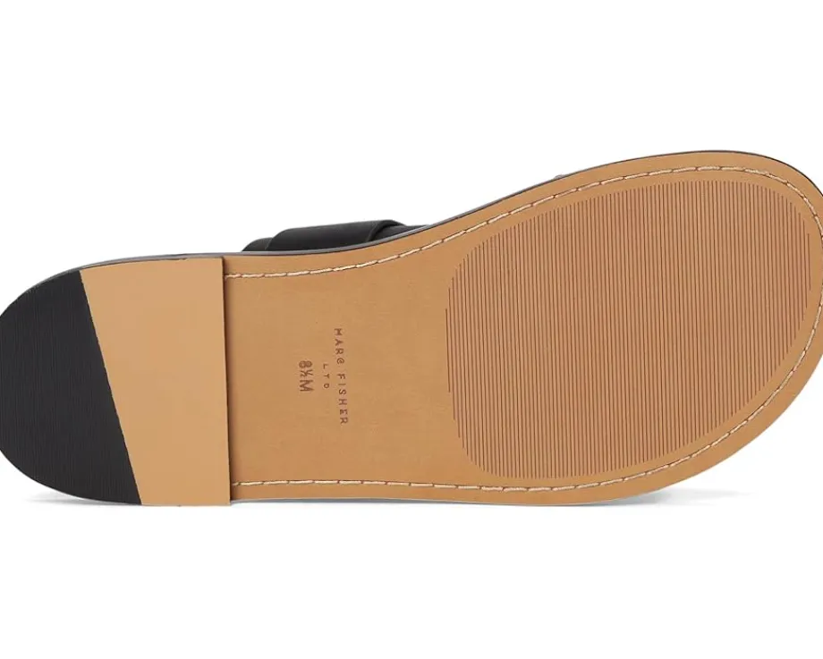 - Stay stylish in the Marc Fisher LTD™ Hallyn Sandals. The slip-on style sandals come with a two strapped leather upper, polyurethane lining, and a comfortable leather insole. The buckle closure on the sandals ensures a secure fit.