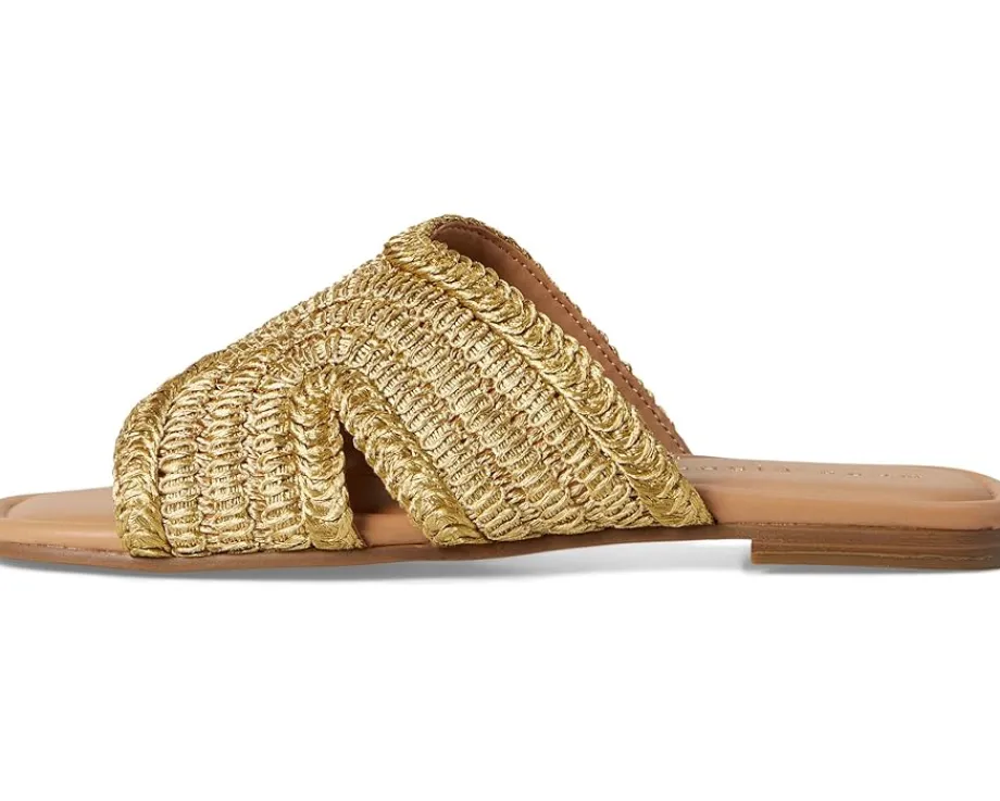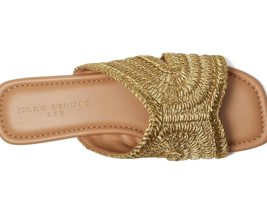 - Designed to enhance your go-to style and comfort during those warmer days, the Marc Fisher LTD™ Narda Flat Sandals feature a breezy and lightweight construction with a textured woven raffia (synthetic) upper, a synthetic lining, and a lightly padded insole. Coming in a slip-on style, the shoes are easy to put on and off.