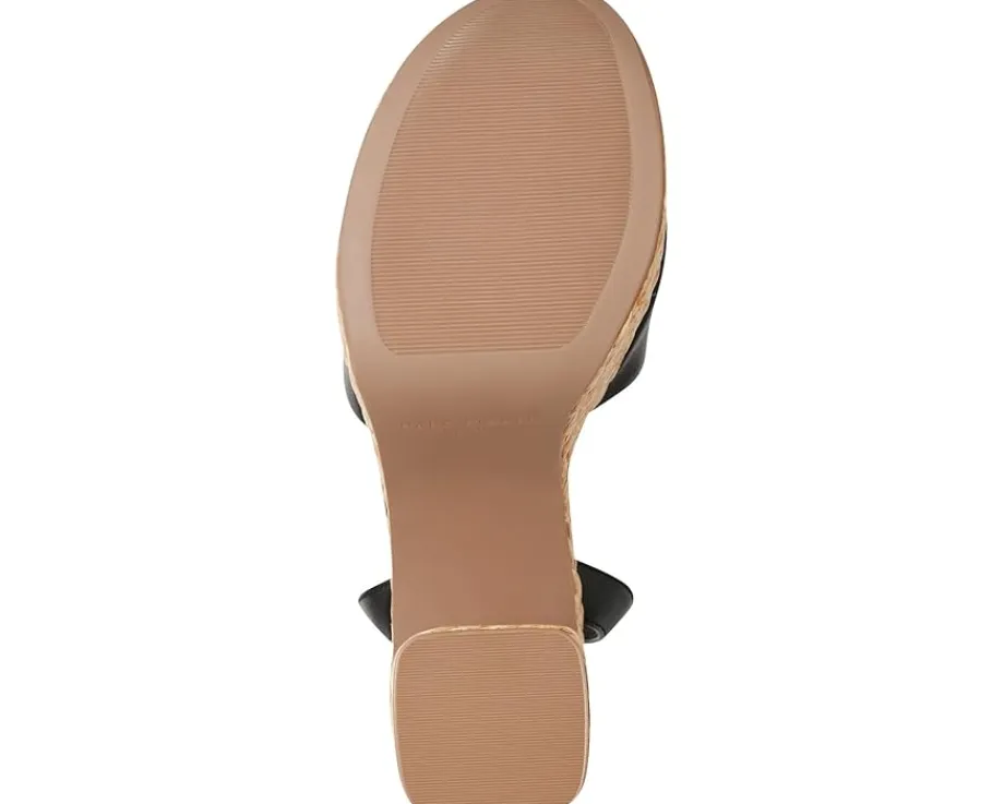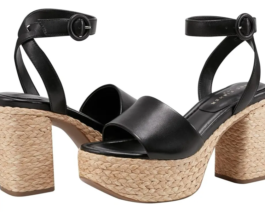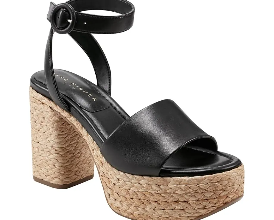 - Bring in the sleekness with sculpted flair wearing Marc Fisher LTD™ Palyca Sandals. The high-block heel footwear features woven construction with leather upper and buckled ankle strap closure.