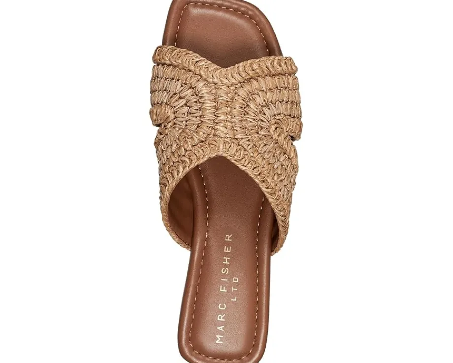 - Designed to enhance your go-to style and comfort during those warmer days, the Marc Fisher LTD™ Narda Flat Sandals feature a breezy and lightweight construction with a textured woven raffia (synthetic) upper, a synthetic lining, and a lightly padded insole. Coming in a slip-on style, the shoes are easy to put on and off.