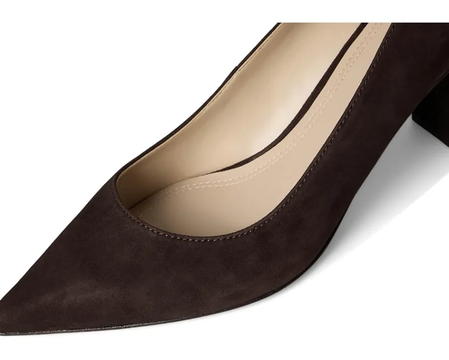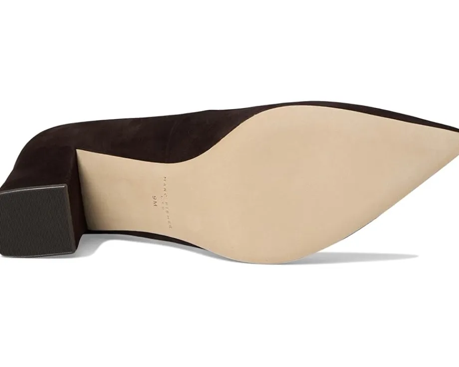 - Heighten your glamor wearing the slip-on style Marc Fisher LTD™ Zala. Crafted from leather upper and man-made lining, this pair of eye-catching sandals features low-top silhouette, block heel, pointed toe and brand detailing on the footbed.