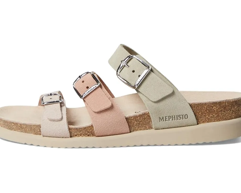 - Enjoy unmatched comfort, flexibility, and cushioning as you walk for miles wearing the Mephisto® Hyacinta Sandals. These are sculpted with triple-colored strappy leather upper with adjustable metallic buckle closures, a contoured padded suede-covered footbed for premium arch support, and a Soft-Air® flexible midsole that absorbs shocks and provides a relaxing walk all the time.