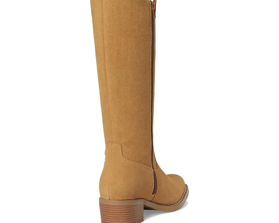 - MIA™ Duston-F takes rustic-chic to a new level. This tall boot is crafted from vegan suede upper, includes pull tabs and a zippered side closure for easy wear, and features a knee-high shaft that pairs perfectly with your favorite denim skirt. Finished on a block heel and the MIA Signature Footbed™-made for the girl on the go.