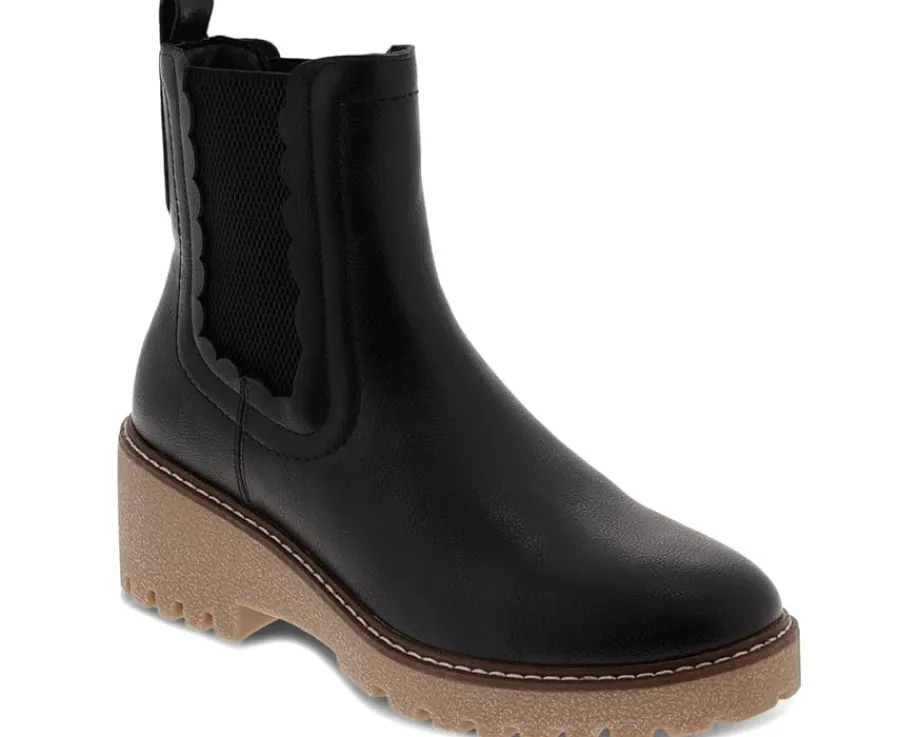 - Step into the KELLEN boot and make your mark with every stride. With its sleek round toe design and a scalloped edge detail, the KELLEN boot combines fashion and functionality. Finished on a elevated 2.3-inch wedged heel.