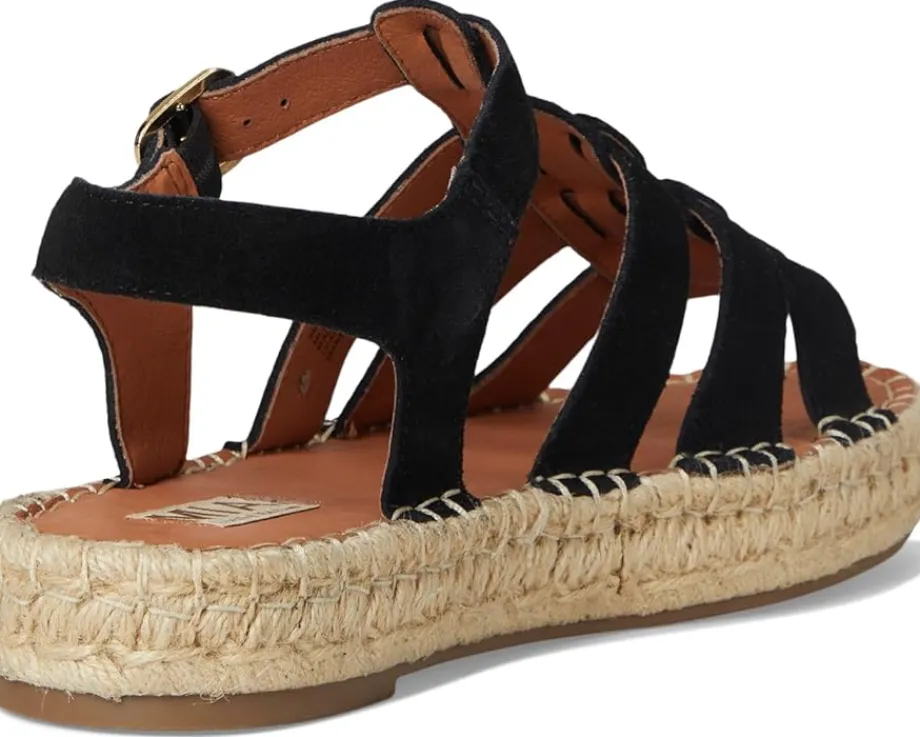 - With its strappy silhouette, the MIA™ MLE-Danette Flat Sandals add a hint of style to your look. The open round-toe sandals are designed with a suede upper, faux leather lining, and a faux leather insole. The ankle strap & buckle closure is designed for a secure fit.