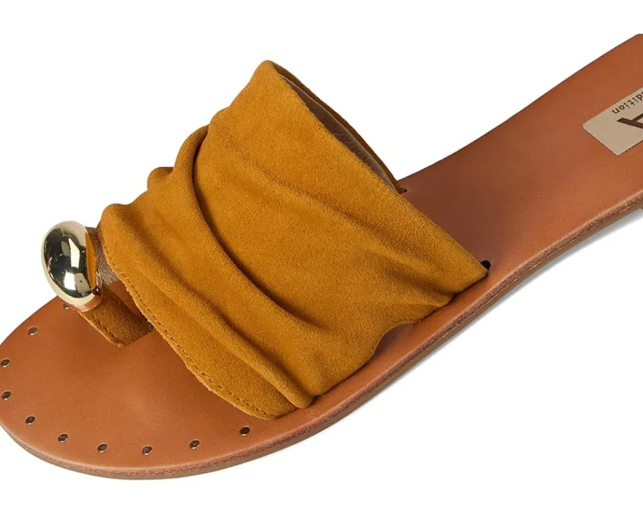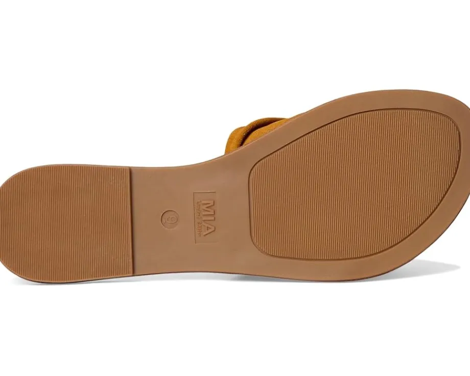 - Liven up your laidback look in the MIA™ MLE-Tiffani sandal. Featuring a genuine suede strap, flexible faux leather lining, nail head details, and a toe ring accent for a touch of glam.