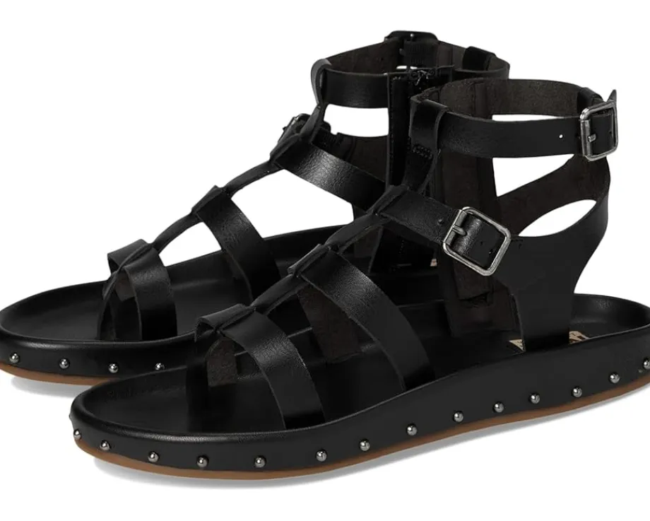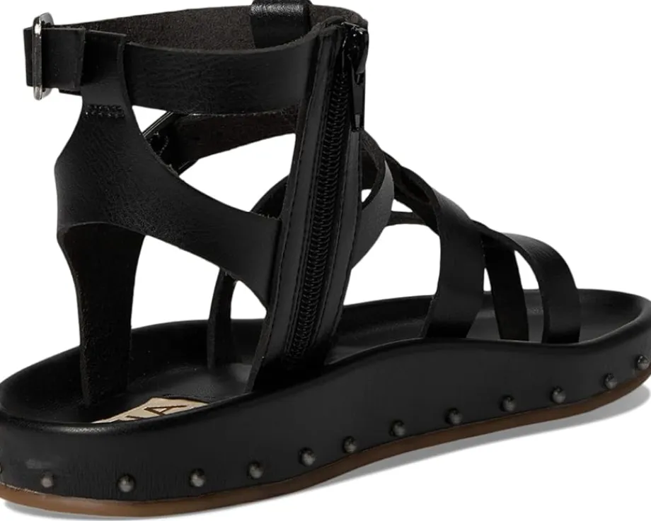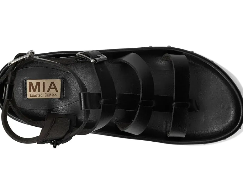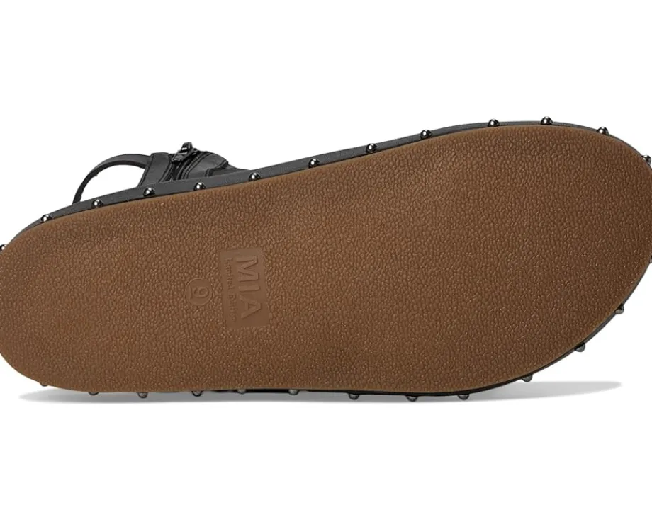 - Add a touch of modern edge with MIA™ MLE-Zahara Sandals. This gladiator-style sandal features vegan leather construction, adjustable straps & zipper closure for adjustability, and playful stud detailing. Finished with MIA®’s signature footbed, they’re as comfy as they are cute. The open round-toe sandals feature a leather upper, lining, and insole.