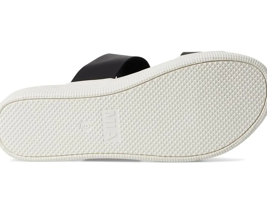 - Get adventurous this summer with the MIA™ Saige slides. Designed from vegan leather, this everyday sandal features two wide straps along the upper for a secure fit, a cushioned insole for everyday wear, and an elevated non-slip sole.