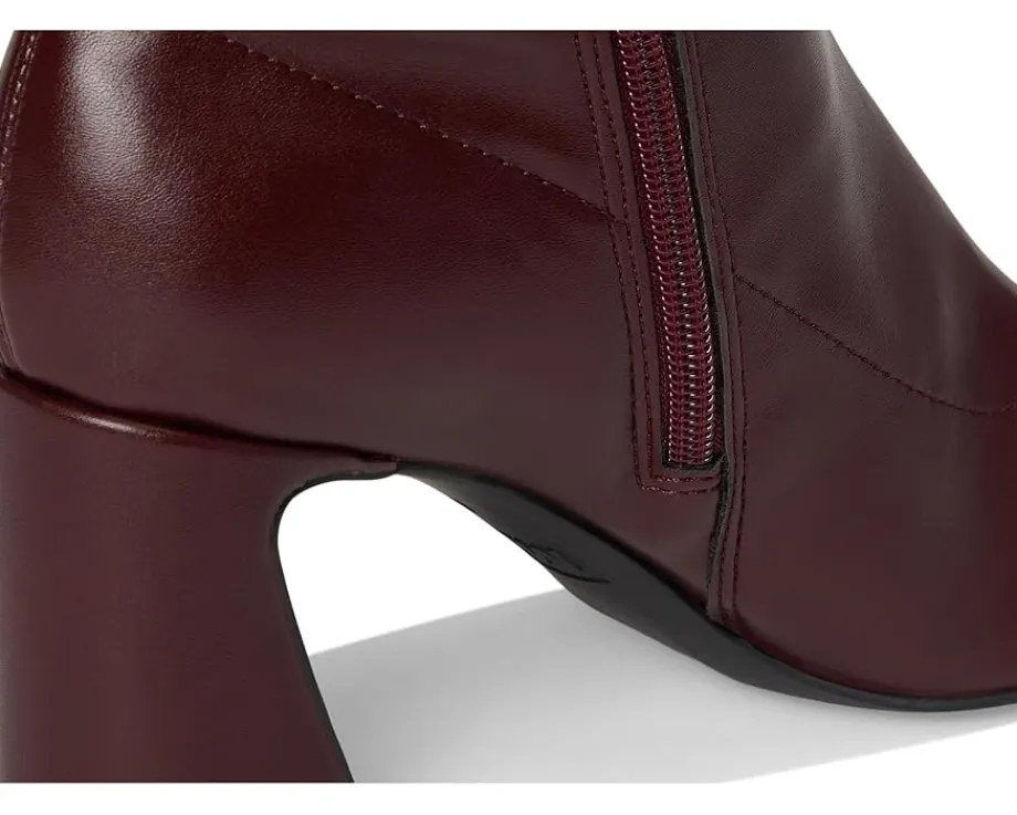 - Add just the right amount of drama with the MIA™ Thiva boots. These heeled boots feature a luxe vegan leather and flare block heels for some extra height. They are made of a cushioned foam insole and faux leather lining. The zippered side closure ensures easy on and off. Pair these ankle-high boots with your favorite leather pants to complete the look.