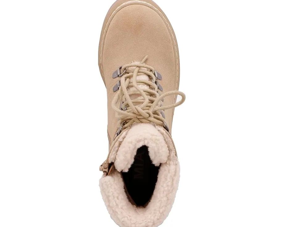 - The MIA™ Tiler boots are your go-to combat booties that are perfect for everyday wear. These ankle-high boots are crafted on faux suede upper with a fur shearling lining. With a lace-up closure, these combat boots are easy to wear and style. The anatomical polyurethane footbed and faux leather lining make them a comfortable footwear choice. Finished on a rounded toe design and stacked block heels, these lace-up boots are perfect to pair with different outfits and styles.