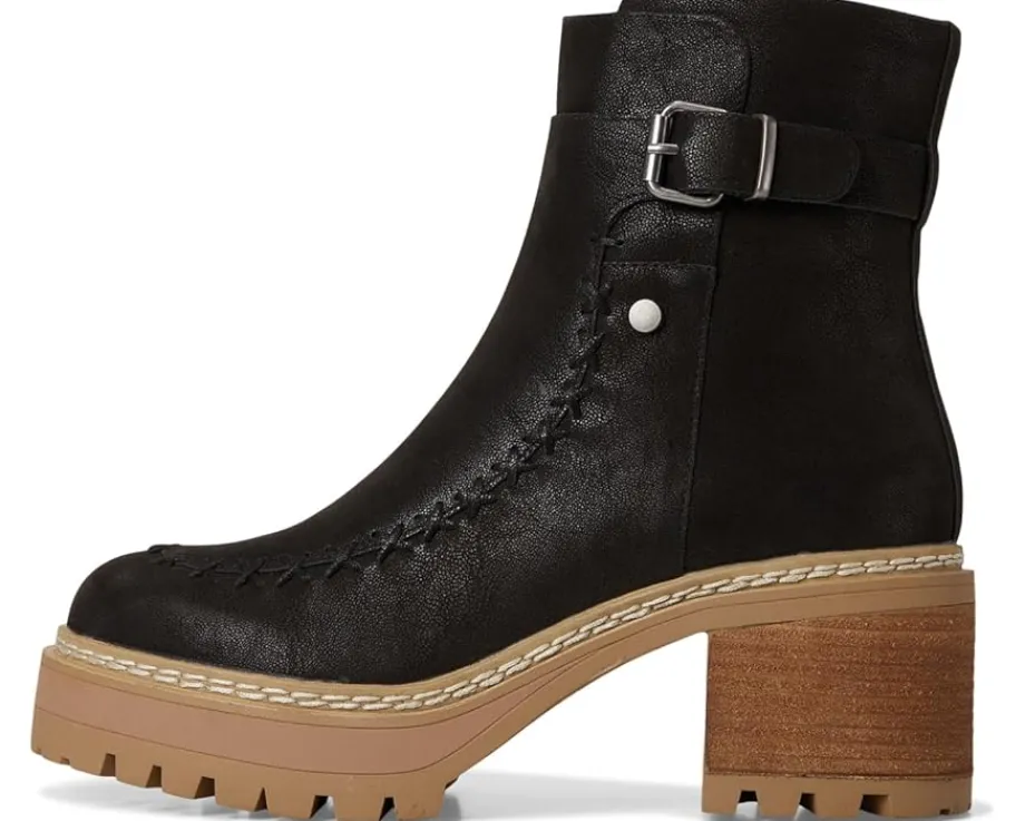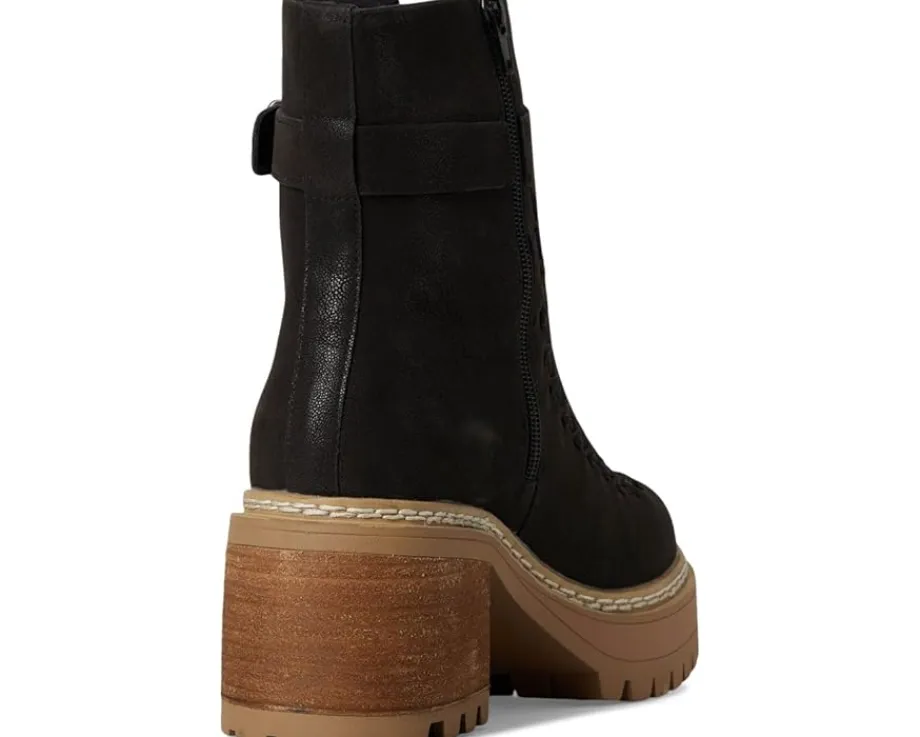 - Elevate your style with the TOULA. This modern boot is crafted from faux suede material and features a buckle accent detail and a zipper closure along the shaft. Finished on a platform lug sole with a stacked 2.7-inch platform heel.