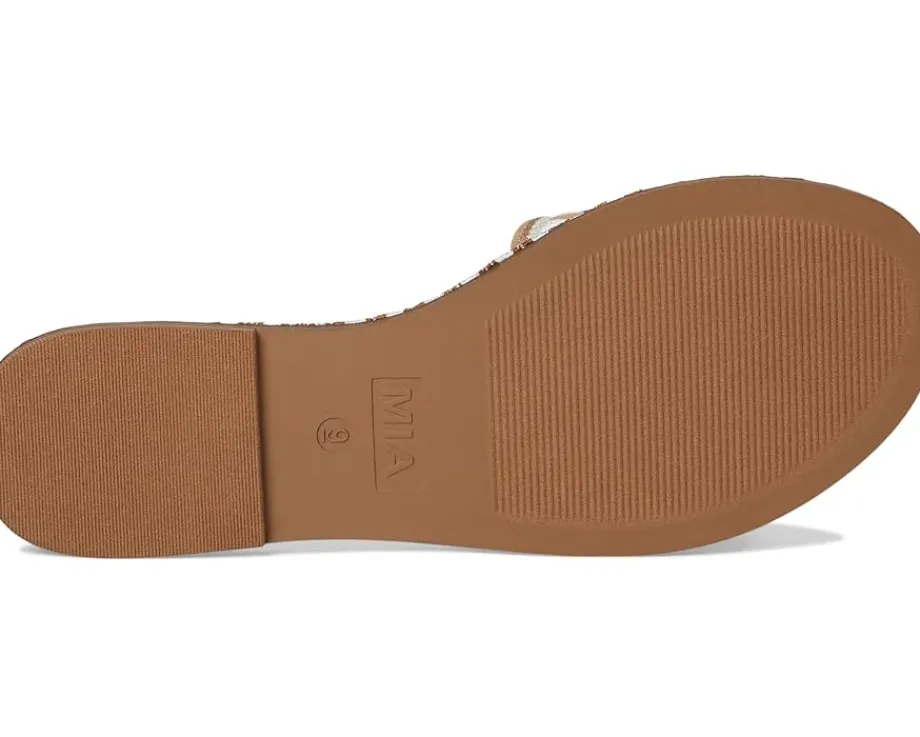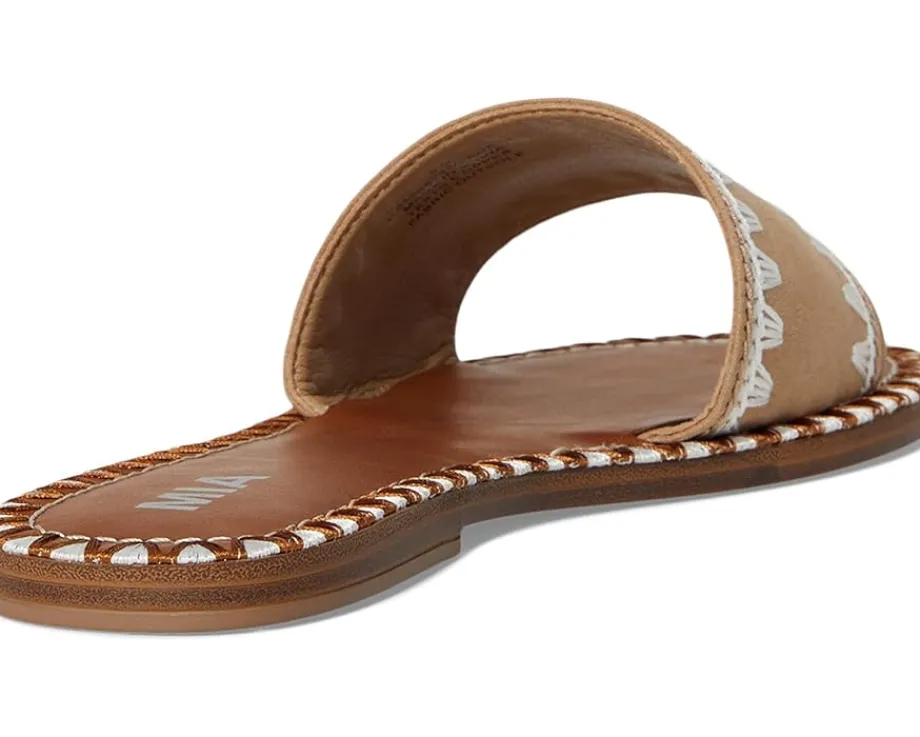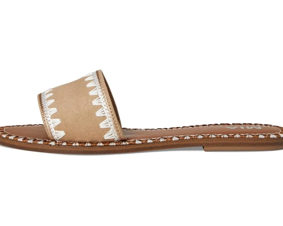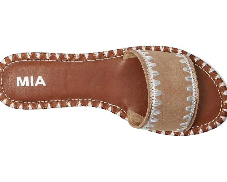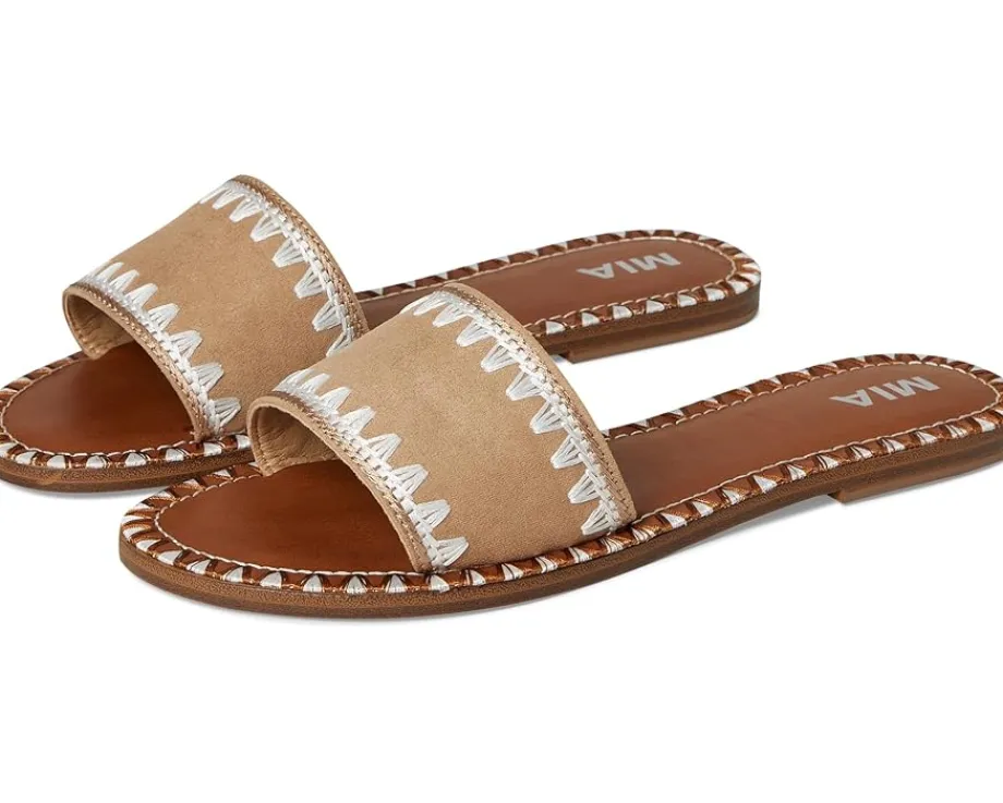 - Essential for warmer days ahead, the MIA™ Vanett is the easiest slip-on sandal to throw on and make a statement with. Crafted from vegan leather, an embroidered stitched edge and a suede upper, you won’t want to take them off.