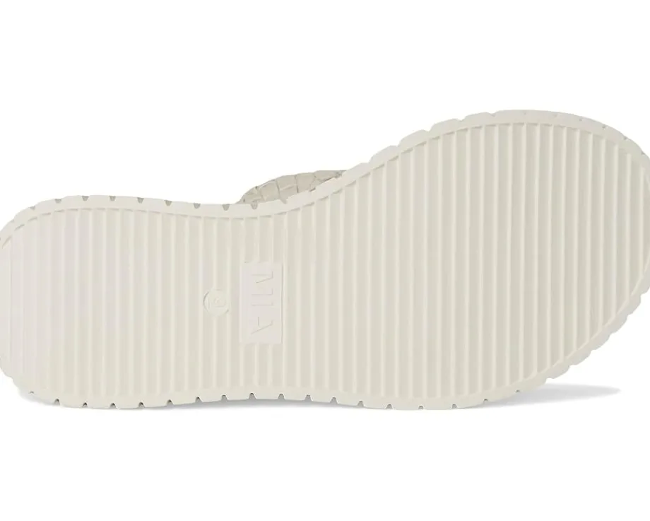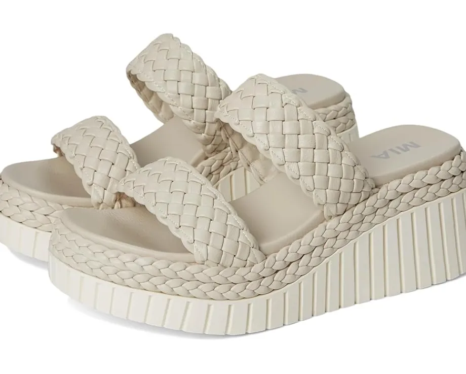 - Give your feet the comfort they deserve while still looking pretty in the MIA™ Yoshi Sandals. The open round-toe, slip-on style sandals are crafted with a faux leather upper with two braided straps. The faux leather lining and anatomical faux leather insole improves the comfort, while the wedge heel detail elevates the style statement.
