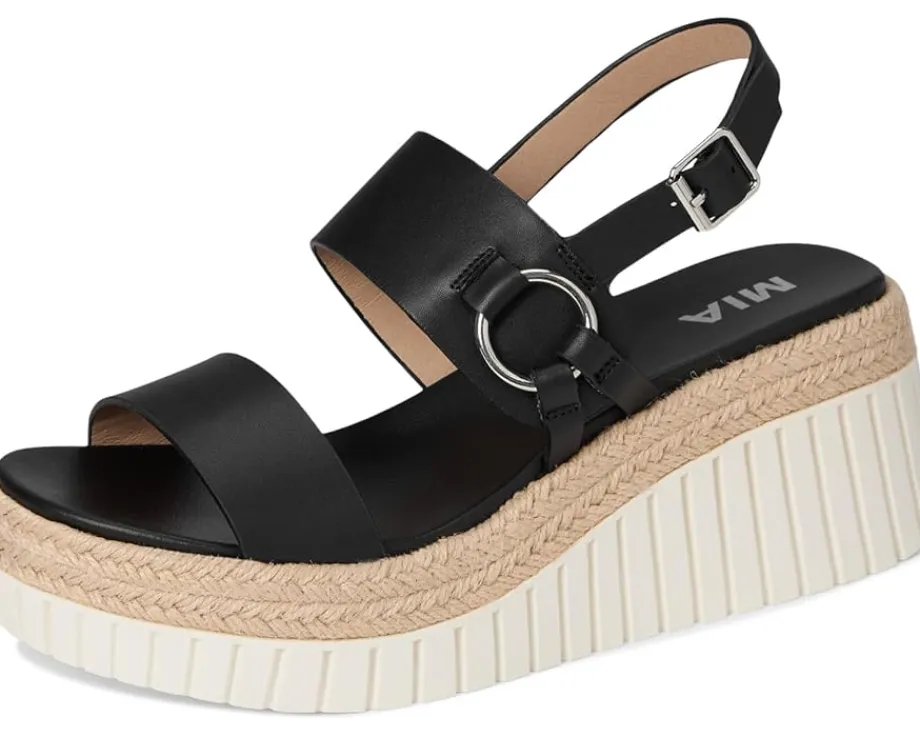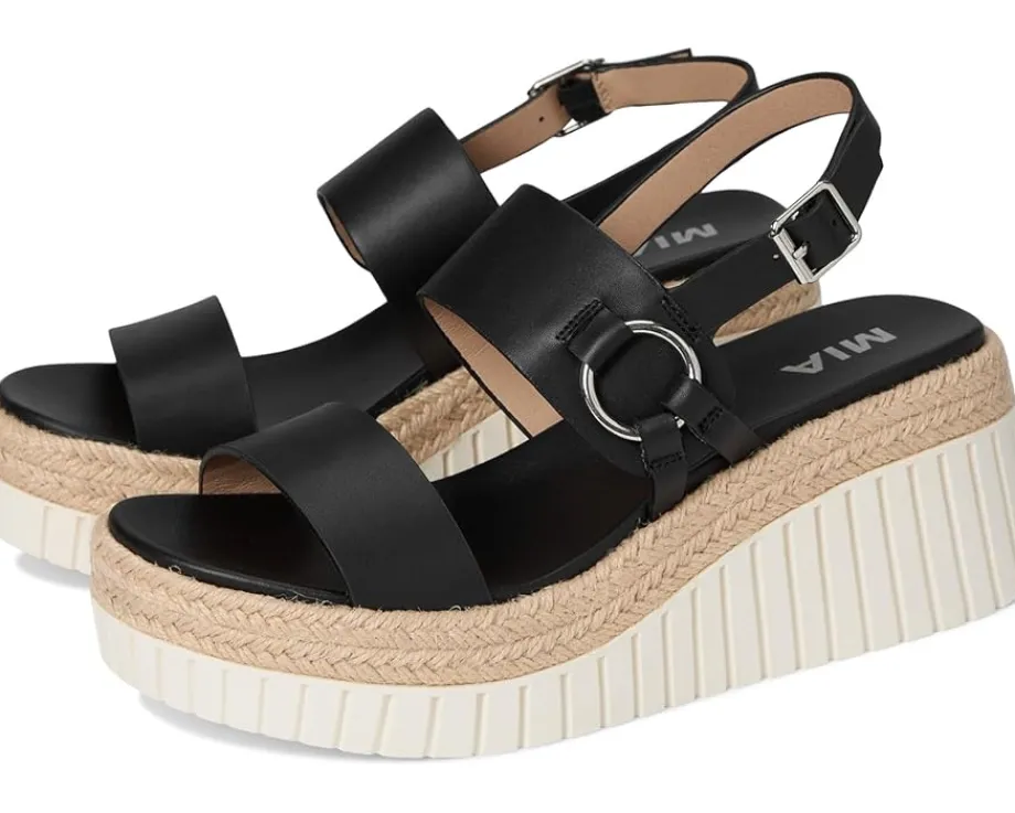 - Bring your style to new heights with the MIA™ Yuna featuring a ring detail, adjustable buckle, and braided raffia for the perfect blend of versatility and trend. This rounded toe style is finished on the MIA signature footbed for maximum comfort and ready to take on whatever the day brings – and look good doing it.
