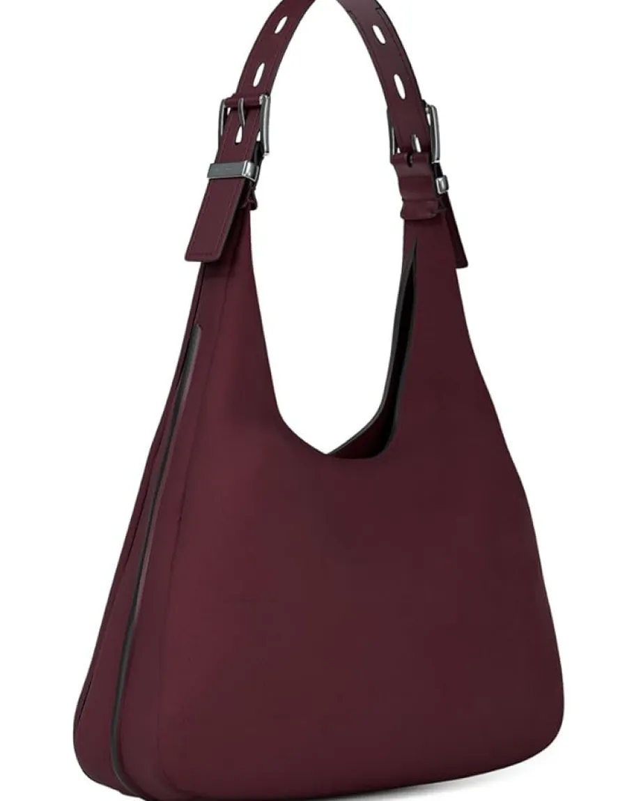 - Keep essentials stored securely in the MICHAEL Michael Kors® Nolita Large Hobo Shoulder Bag. Crafted with a leather construction, the shoulder bag features an adjustable strap, a spacious interior, one internal pocket, and metal hardware detailing at the front.