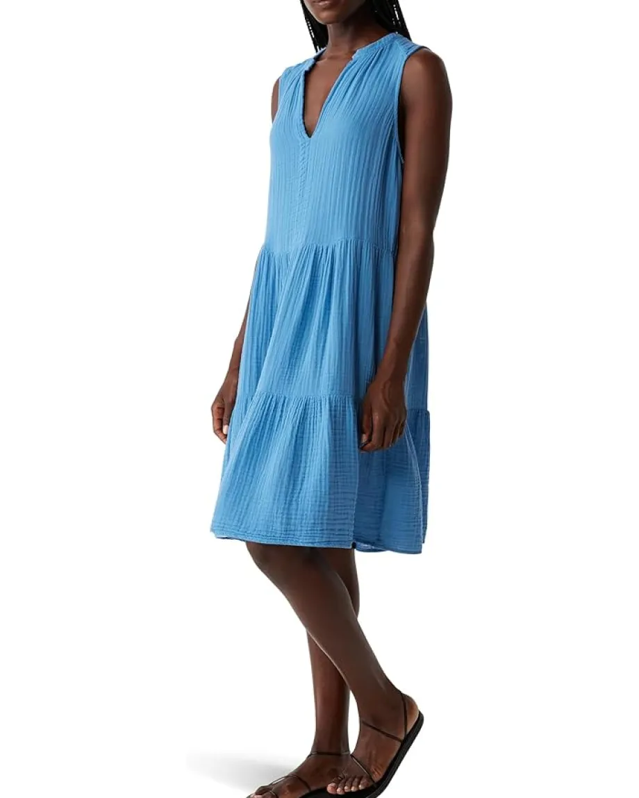 - Embrace a simple yet chic look on those warm weather outings or date nights by opting for the Michael Stars™ Daisy Above Knee Dress. Designed for a relaxed fit, this lightweight dress is crafted in a textured and breathable double gauze fabric. It is sleeveless and styled in a babydoll silhouette with a notched V-neckline, an empire waist, and a tiered skirt.