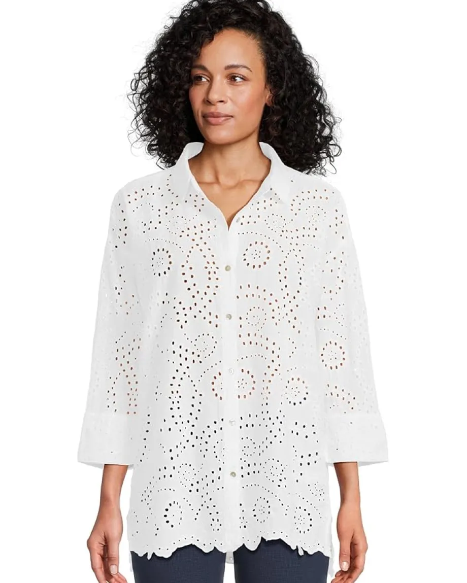 - Comfortable and stylish, the Mod-o-doc™ 3/4 Sleeve Easy Lace Shirt features cut-out lace detailing allover. Its buttoned front closure offers easy wear. This lace shirt is styled with elbow-length sleeves, a collared neckline, and a scalloped hem. The cotton fabric of the shirt offers long-lasting comfort and breathability. Whether you’re getting ready for work or going out with friends, this button-down shirt is a great choice.