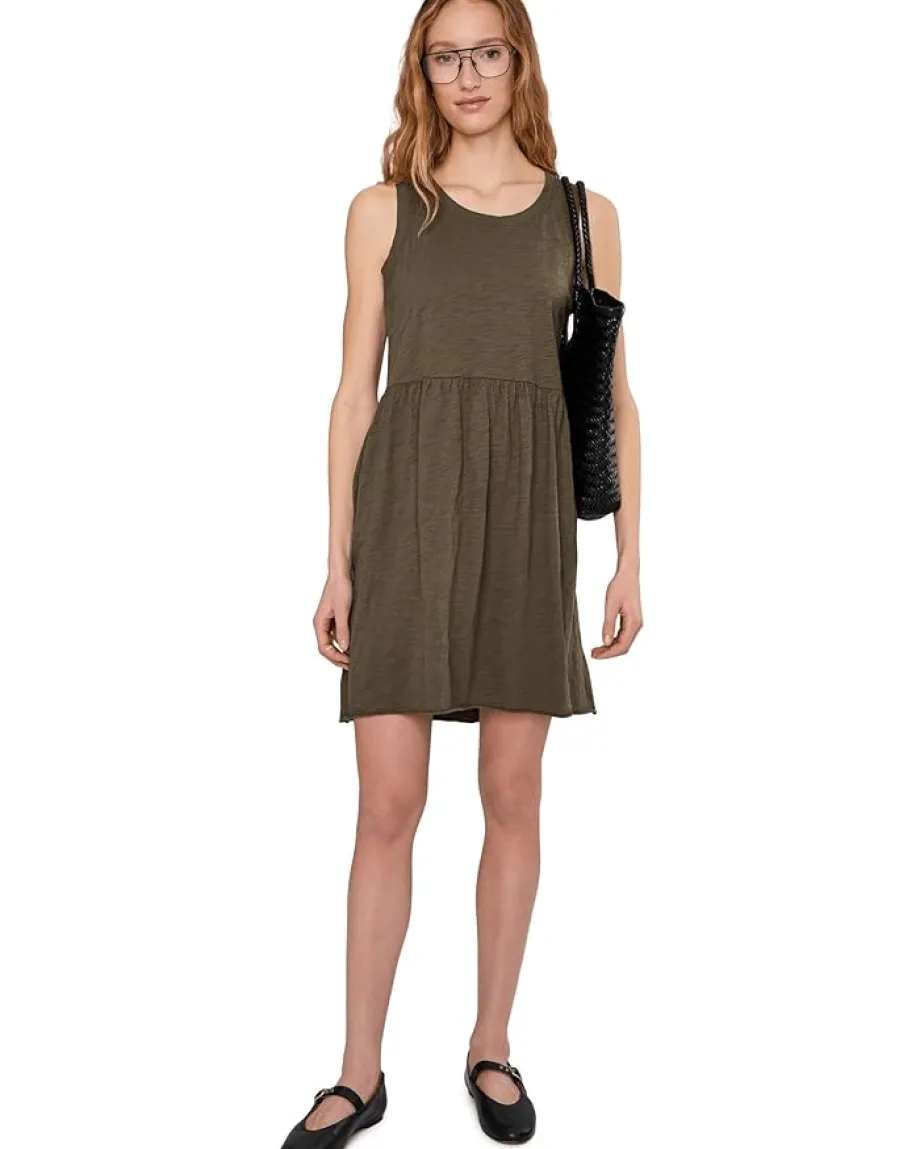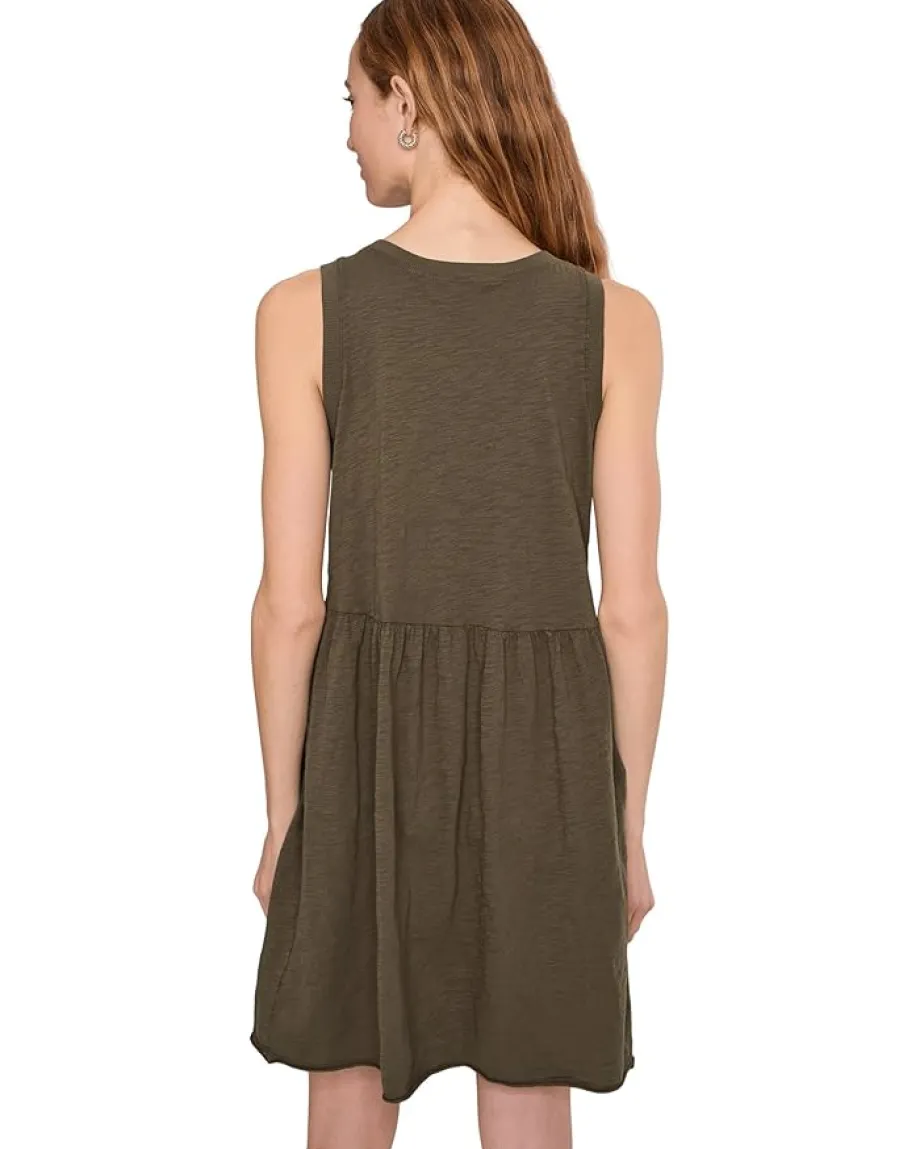 - Exude a stylish and sophisticated charm wearing the Mod-o-doc™ Drop Shirred Waist Tank Dress. The pull-on style dress features a crew neck, a sleeveless design, shirred waist, and an above-the-knee silhouette.