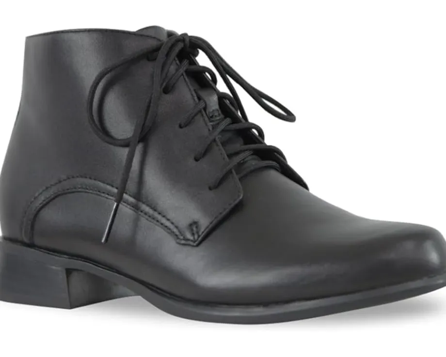 - Give your outfit an added touch of style and sophistication wearing Munro® Antonia Boots crafted with a leather upper, fabric lining, and removable contoured polyurethane footbed for arch support and comfort. The boots are designedfor a tailored look with classic fit and feature a round toe shape, high stacked block heel, lace-up detailing with inside zip closure for convenience.