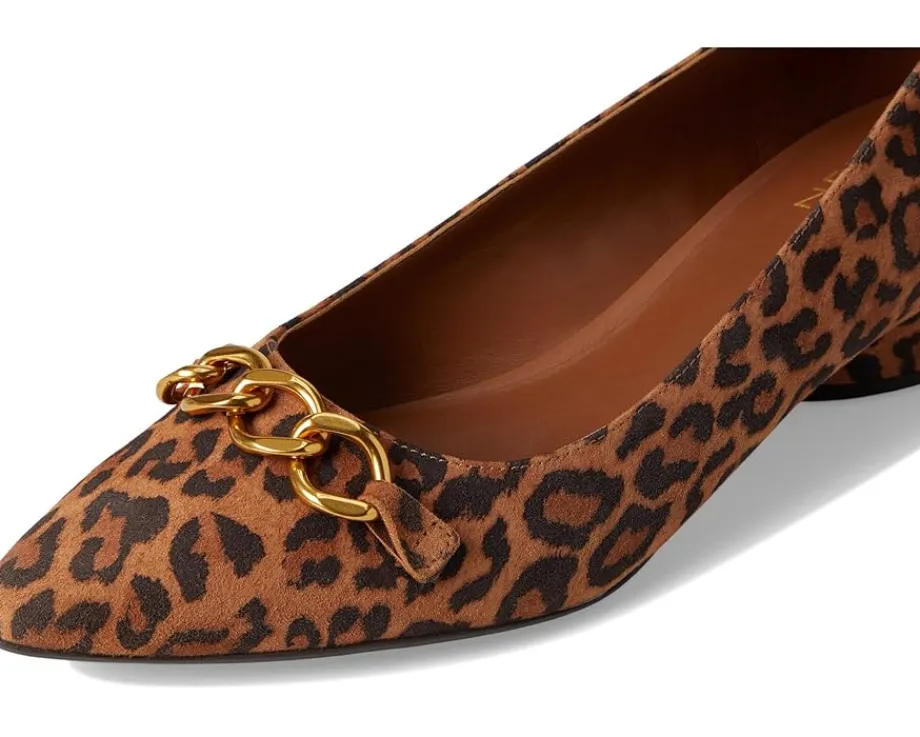 - The Naturalizer® Becca has a low block heel and slip-resistant sole that ground this pointy-toe pump outfitted with a glinting chain and contoured footbed.