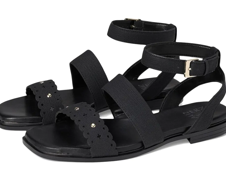 - The cool and coveted Naturalizer® Gana strappy sandals feature an ankle strap and a synthetic/fabric upper with a squared open toe design. The adjustable buckle closure adds a touch of practicality while ensuring the perfect fit. Designed with Contour+ Comfort Technology, they provide a premium fit and all-day comfort experience. The N Flex outsole offers next-level flexibility, cushioning, longevity, and shock absorption, energizing your every move.