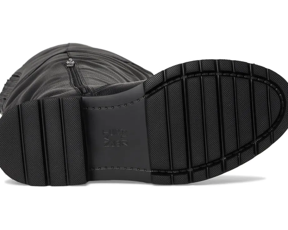- Obsessed with the over-the-knee look? Try Naturalizer® Scarlette Wide Calf Over The Knee Boots. These knee-high boots deliver a streamlined, high-fashion silhouette designed specifically for a premium wide calf fit. Featuring an elegant leather upper and a chic almond toe, they exude sophistication. The Contour+ Comfort technology provides all-day cushioning, while the inside zippered side closure makes for effortless wear. With stylish stitch detailing and a durable traction synthetic rubber outsole, you get cutting-edge style that truly fits and feels fantastic.