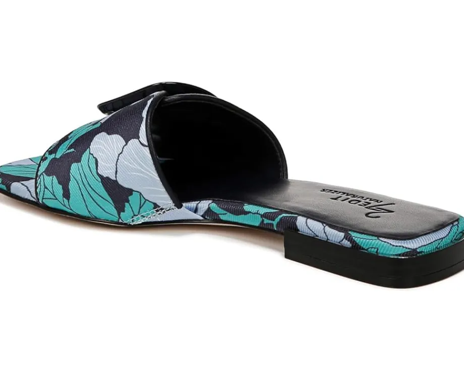- Step into a world of artful comfort wearing the Naturalizer® Naomi2 Slides. Crafted from floral fabric upper with buckle detailing on top, this pair of slip-on flats features open square toe, low-stacked heel, foam insole for added comfort and cushioning, and sleek silhouette for a classy look. It comes with brand detailing on the footbed.