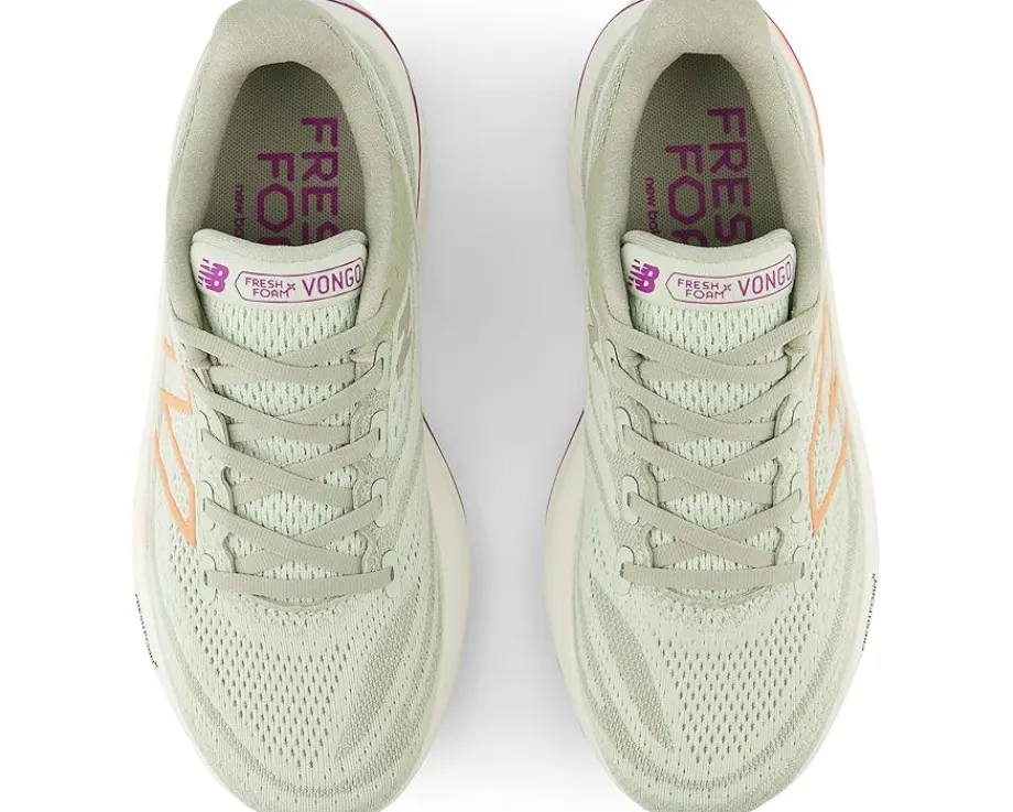 - Achieve ideal foot strike by wearing New Balance® Fresh Foam X Vongo V6 sneakers. Crafted from synthetic mesh upper and fabric lining, the sneakers provide superior breathability. It has removable padded footbed and round toe with a lace-up closure and signature monogram on the quarter. A lift back provides added support and innovative underfoot offers stable running.