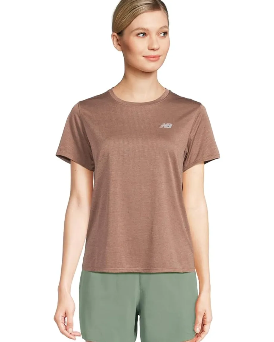 - Behold the zenith of environmentally-conscious sportswear: the New Balance Women’s Athletics T-Shirt Heather. Crafted for the environmentally conscious athlete, this breathable masterpiece features NB ICEx technology for rapid cooling. Reflective logo for visibility, short sleeves, crew neck, and the iconic brand emblem on the chest.